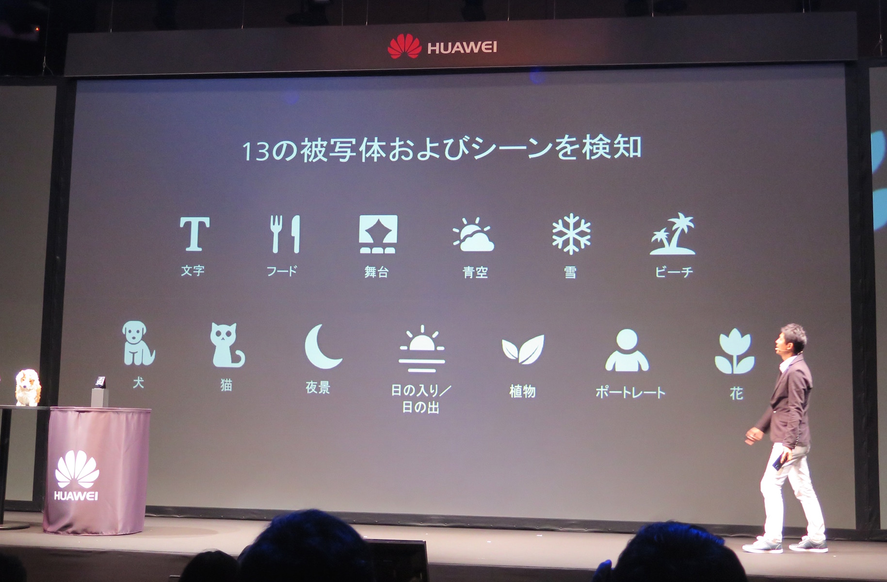 HUAWEI Mate 10 Proには、ライカとの共同開発によるダブルレンズが搭載されています。スマホのカメラでは最も明るいと言ってもいいF値1.6のレンズを採用し、1200万画素カラー+2000万画素モノクロのダブルセンサーを搭載。夜間や照明が暗い場所でも、わずかな光を感じ取り、ディテールまで捉えられるように進化しました。さらに、AIプロセッサーによって被写体をリアルタイムで分析し、被写体の特徴や状況に応じて最適な設定が自動で行われるようになりました。被写体の動きも予測するので、ペットの撮影時にも重宝しそうです。