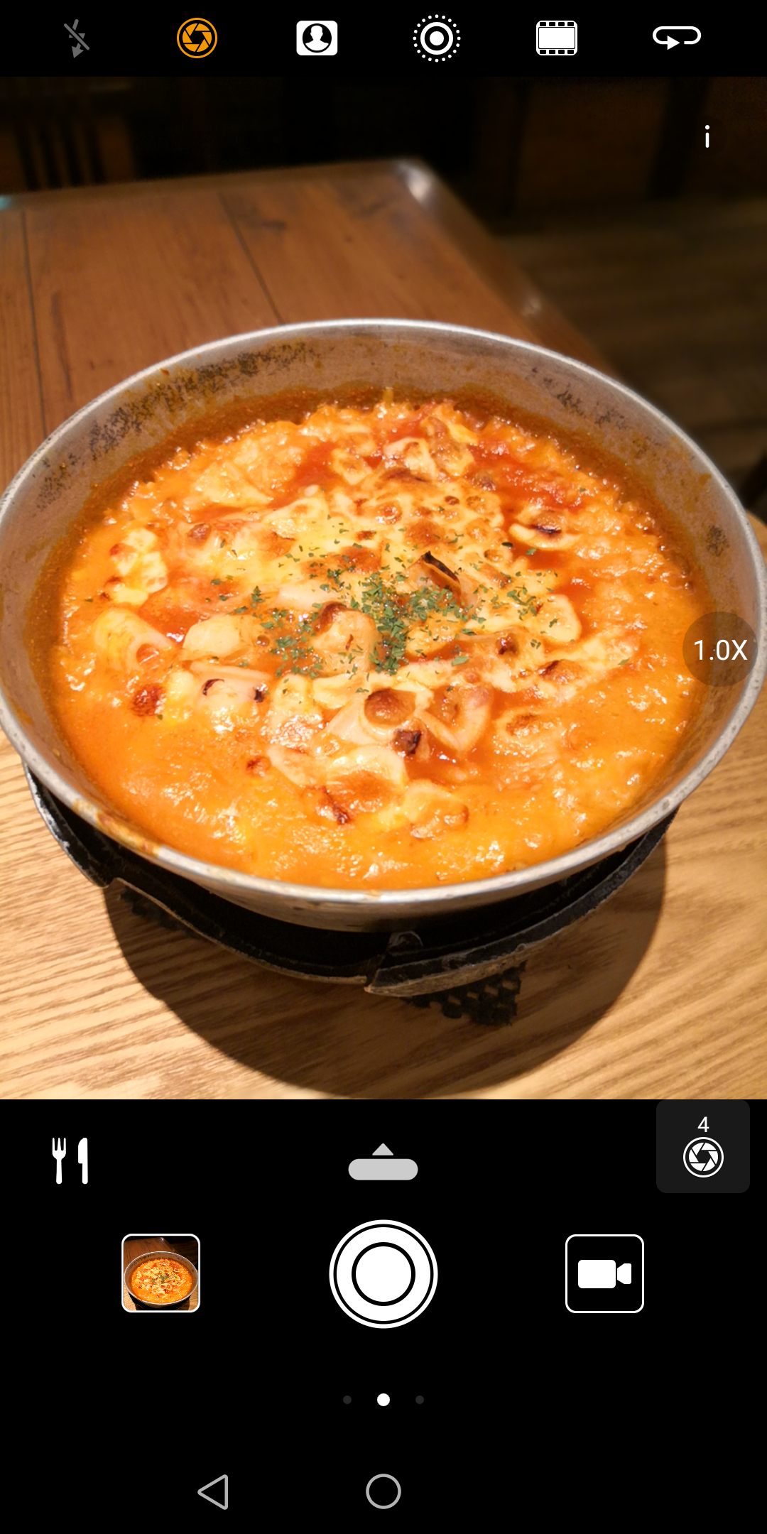 ▲食べ物を撮影しようとすると、左下に「フード」のアイコンが表示