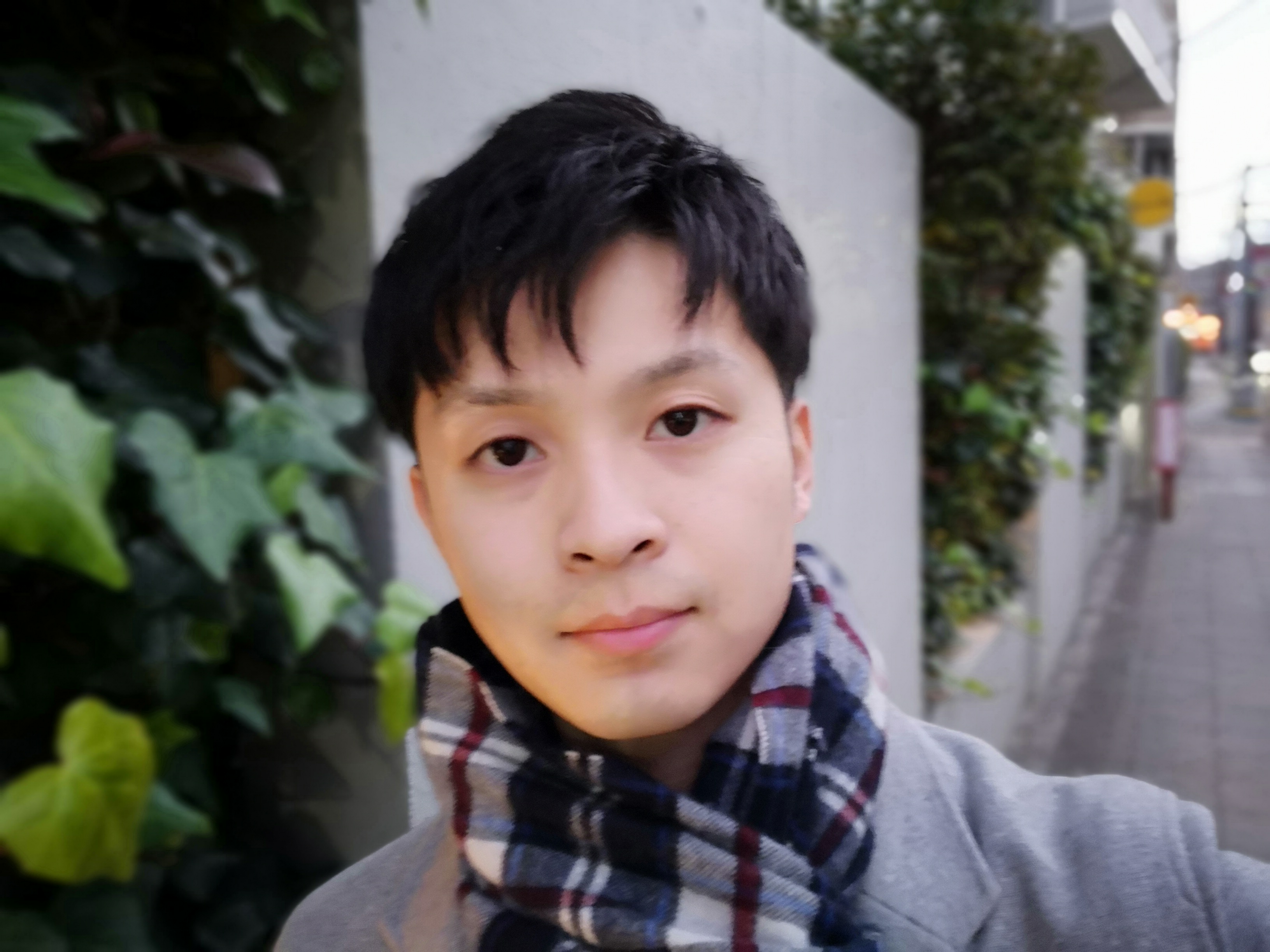 ▲前面カメラで、ビューティーレベルを「5」にして、芸術的ボケ味を有効にして撮影