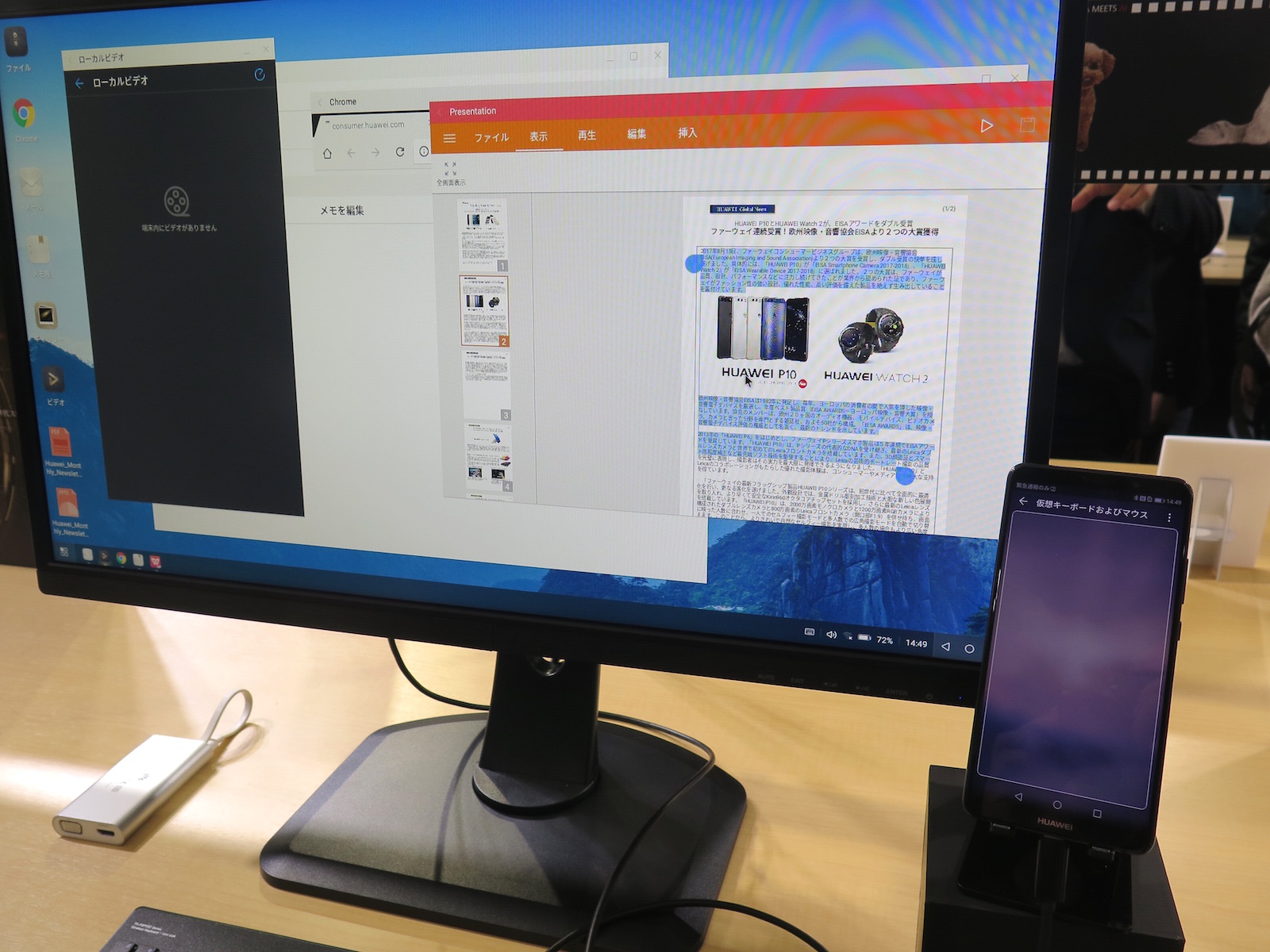 ▲USB Type-CとHDMIをつなげるケーブルを使えばPCモードの利用も可能