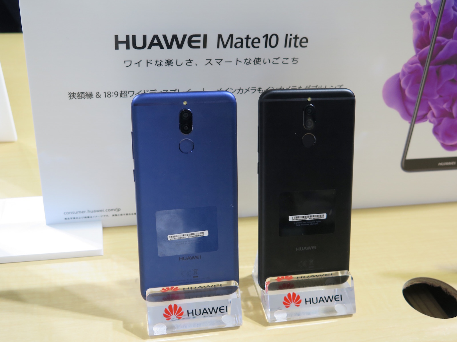 同時に発表された「HUAWEI Mate 10 lite」は、画面アスペクト比が18:9で、5.9インチのワイドディスプレイを搭載。カメラはライカではないものの、背面は1600万画素+200万画素、前面は1300万画素+200万画素のダブルレンズカメラで、背景を美しくぼかして、被写体を立体的に際立たせる撮影が可能。