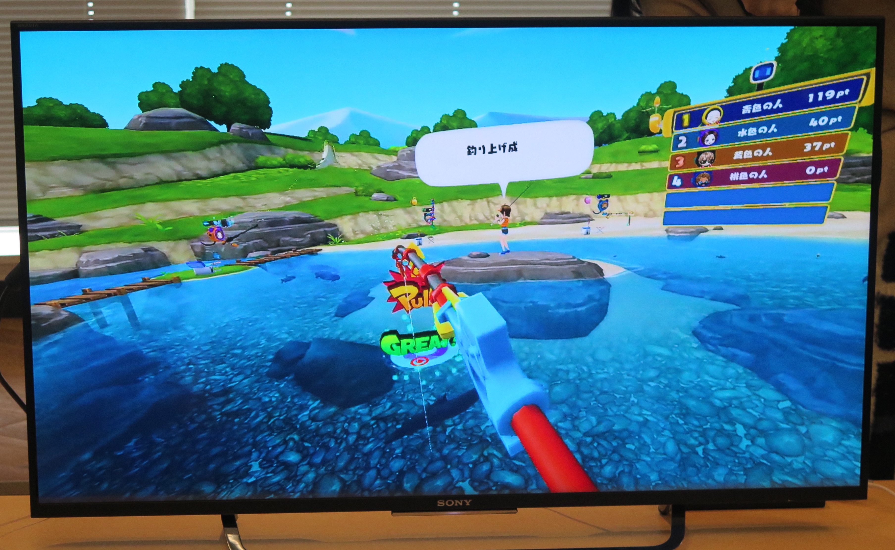 ▲筆者も体験。コントローラを釣竿に見立てて操作するだけ。コツをつかむまでに少々時間を要したが、ハマりそうな楽しさだった