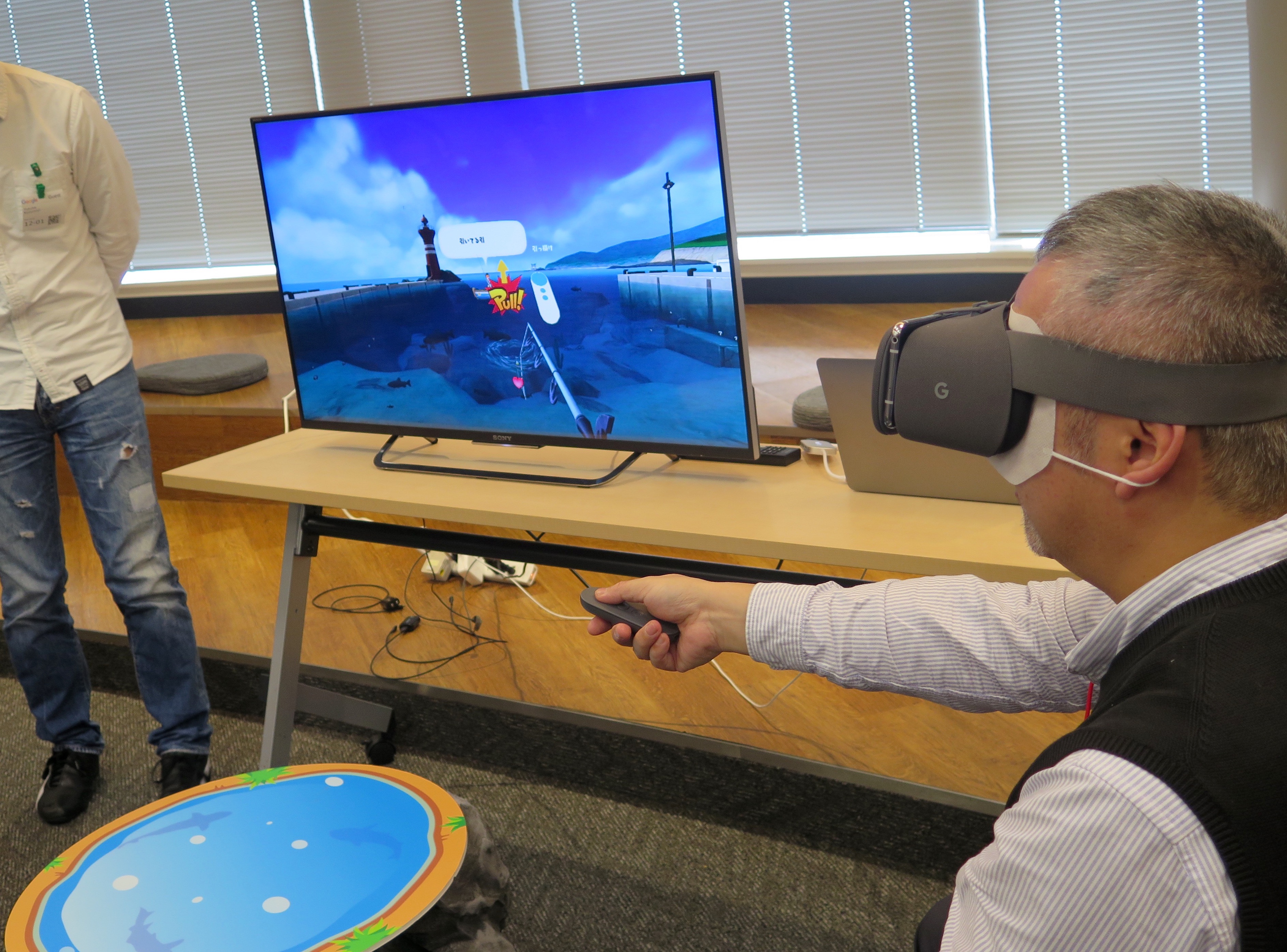 Daydream Viewの日本発売を機に、日本のコンテンツプロバイダーによるコンテンツも増えていく見通し。発表会では、海外でも人気の「釣りスタ!VR」を複数人でプレイするデモも実施されました。
