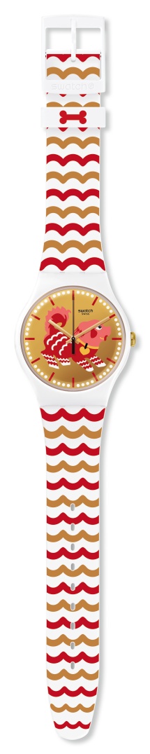2006年から始まったスウォッチ干支モデルも2017年酉年でちょうどひと回り。2018年の戌年バージョンとして登場したのは、ゴールド×レッド×ホワイトの配色が新春の雰囲気にぴったりな新モデル。