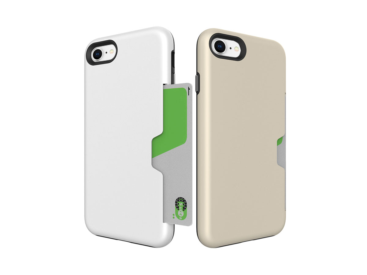 衝撃をケース全体に細かく分散するポリカーボネート素材と衝撃を吸収するTPU素材の二層構造、人間工学に基づいた持ちやすいフォルム、押しやすいボタンなど細かい部分にまで工夫をこらし、カードを1枚収納できるスペースも設けられています。