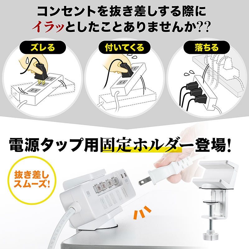 >> サンワダイレクト「電源タップホルダー(クランプ式・デスクホルダー)」
