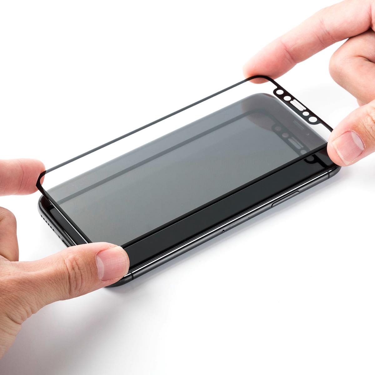 「200-LCD050BK」は、フィルムのエッジに曲面加工を施したラウンド形状を採用しているのが特長。従来の角がそのままのガラスフィルムでは、操作時の違和感はもちろん、ガラス欠けが起こりやすいのが難点でした。「200-LCD050BK」(2380円)は、iPhone Xの本体曲面にフィットするので知らない間に「あれ何でガラス面にひび割れが…」といった心配はご無用。いつまでも美しい画面を保ちます。