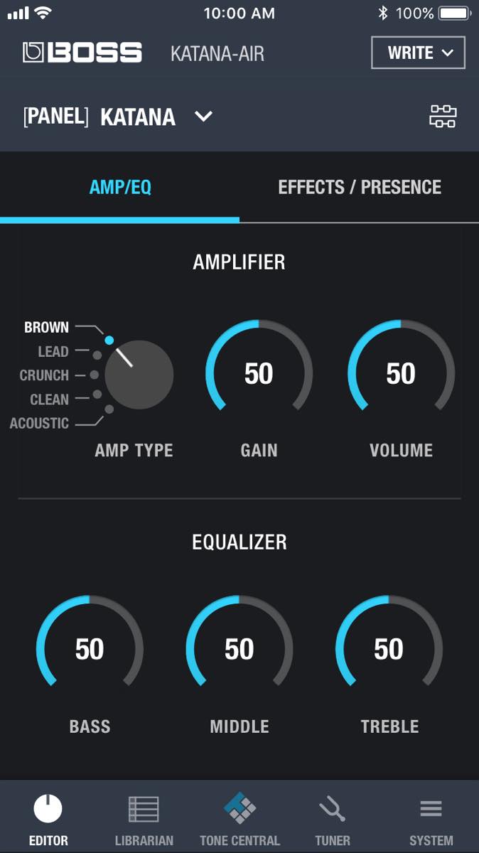 さらにWebサイト「BOSS TONE CENTER」から無料でダウンロードできる専用アプリを使用することで、スマホやタブレットでの音色調整や、サイト内に用意されているさまざまなスタイルの音色をダウンロードしてギターサウンドにしたり、アンプ本体に内蔵の50種類上に及ぶエフェクト群を駆使した多彩な音作りもOK。作成した設定は最大6種類までアンプ本体へ記憶可能です。