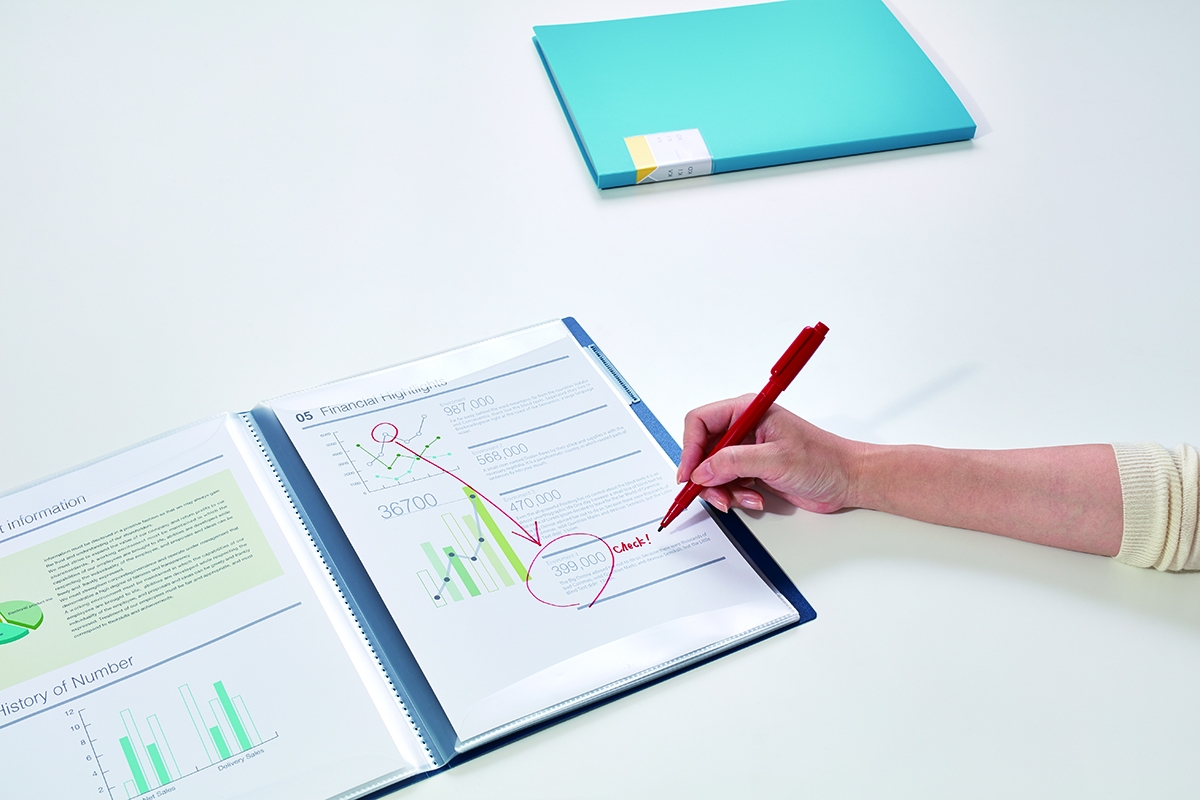 書類の保管に欠かせないクリアファイル。仕事や勉強、プライベートで誰でも一度は使ったことがあるハズ。大切な書類をキレイに見やすく保管できるクリアファイルですが、唯一とも言える難点は、書類に書き込みしたいときにポケットから出さなければいけないということですね。せっかく入れた書類をポケットから出すと、折れてしまったり、出し入れが多いとポケットの端が切れてしまったり…。
