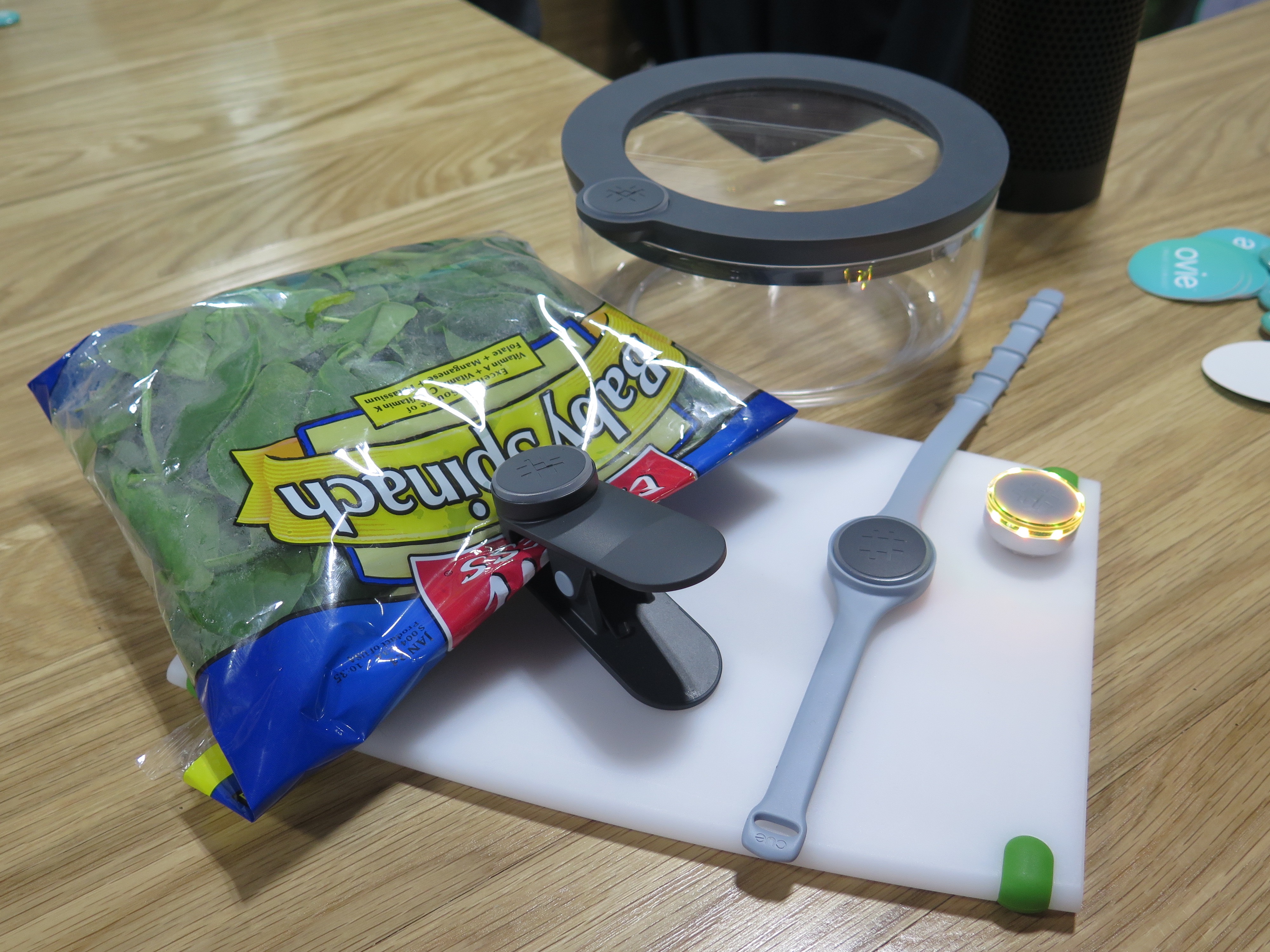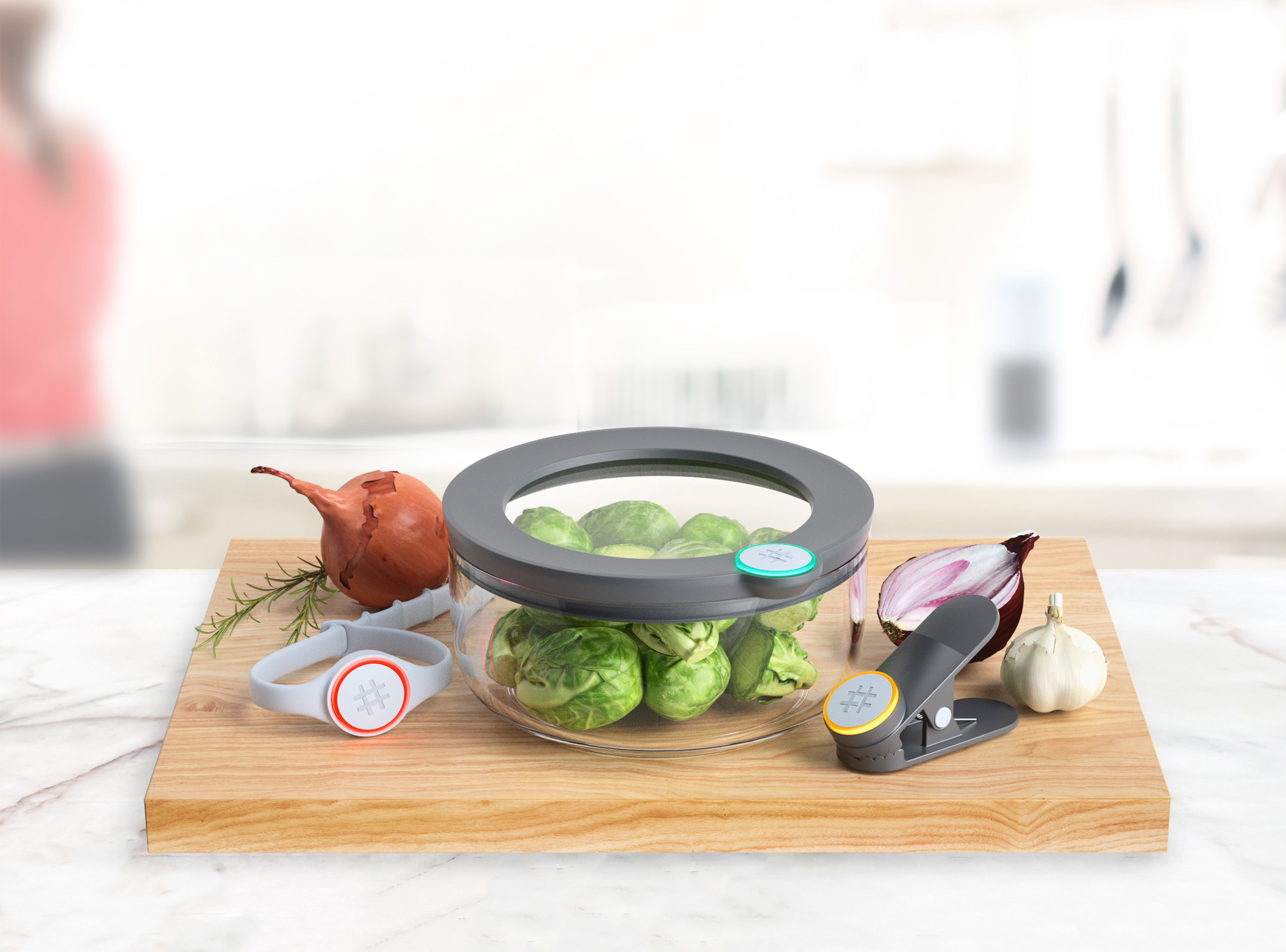 アメリカ・シカゴ発のベンチャーが開発した、食べ物を無駄にしないためのシステム。色が変わるタグが付いた容器に野菜などを入れたり、余った食材をビニール袋に入れてタグ付きのクリップなどで留めると、緑・黄・赤の光で鮮度レベルがわかる仕組み。つまり、鮮度が落ちる前に、その食材を消費するように導き、食材費の無駄を節約できるという製品です。