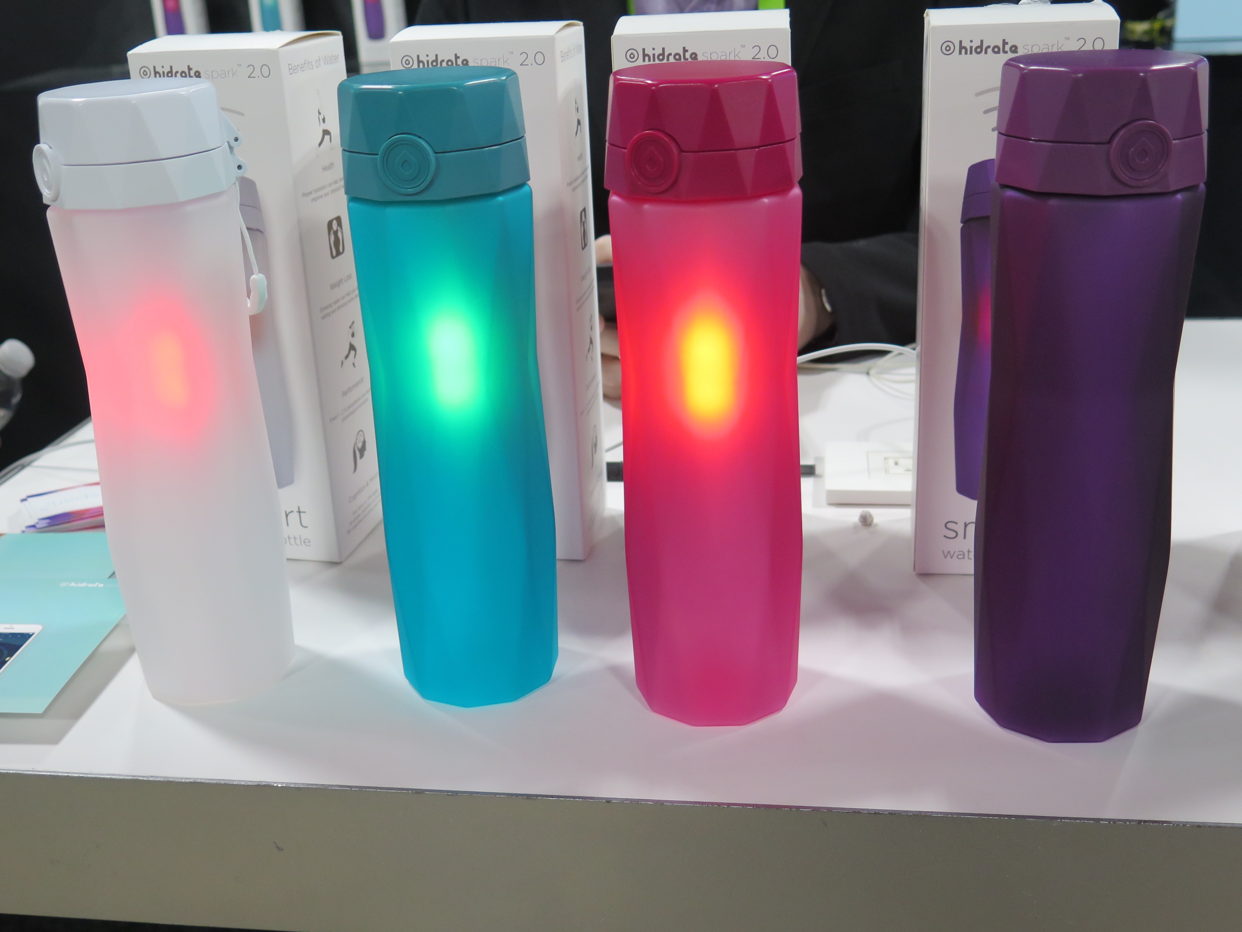 一見すると、ありがちなウォーターボトルなのですが、光ることが特徴。「この光は何?」と聞いてみたところ、水を飲むべきタイミングを知らせてくれているとのこと。