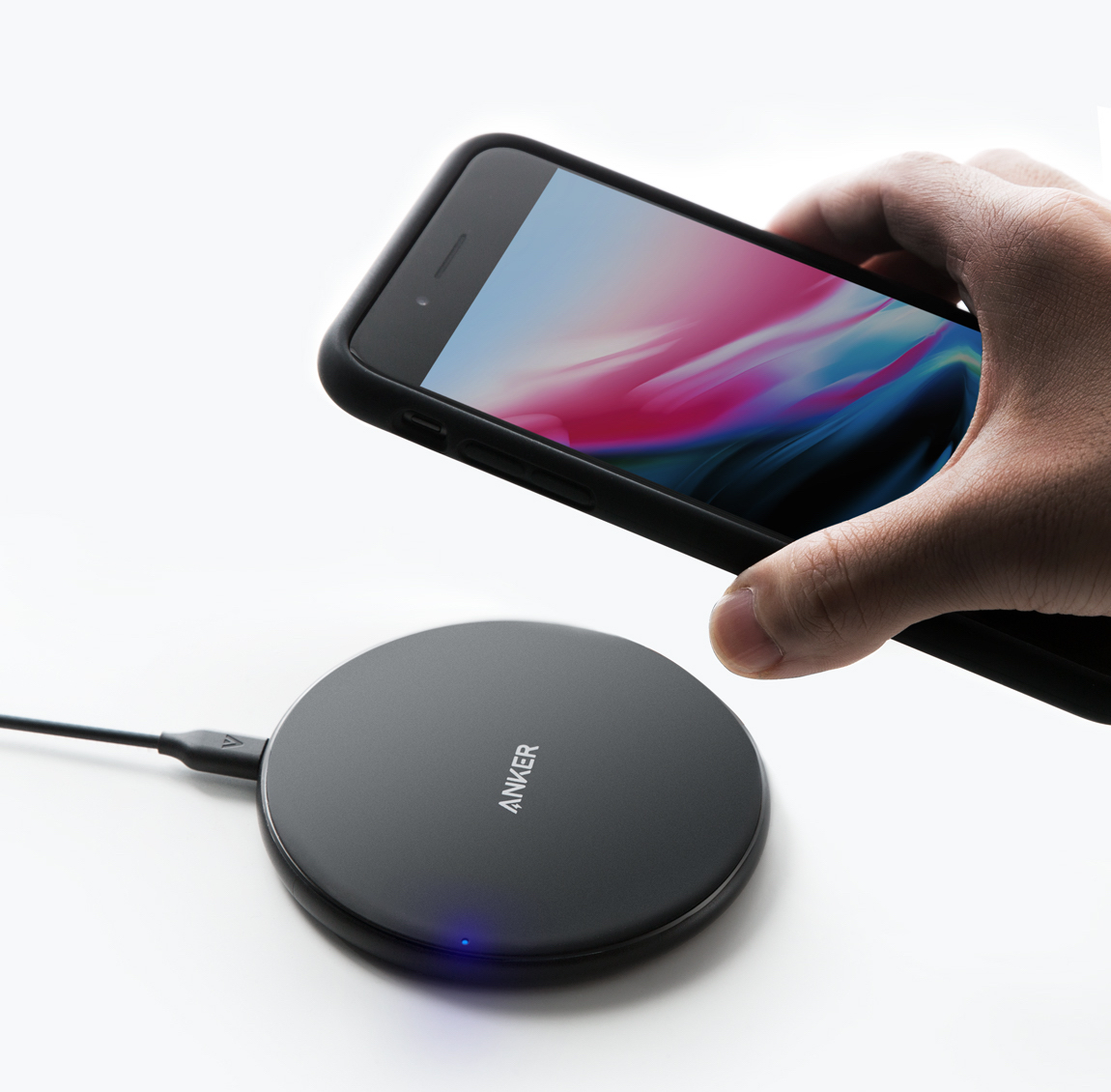 「充電中は操作しない。シンプルなワイヤレス充電器がいい」という人なら、余分なものをそぎ落とした、シンプルな円形パッド「Anker PowerPort Wireless 5 Pad」(2299円)を。パッドの表面は、柔らかくクッション性のあるなめらかなラバー製なので、スマホを傷つける心配がありません。