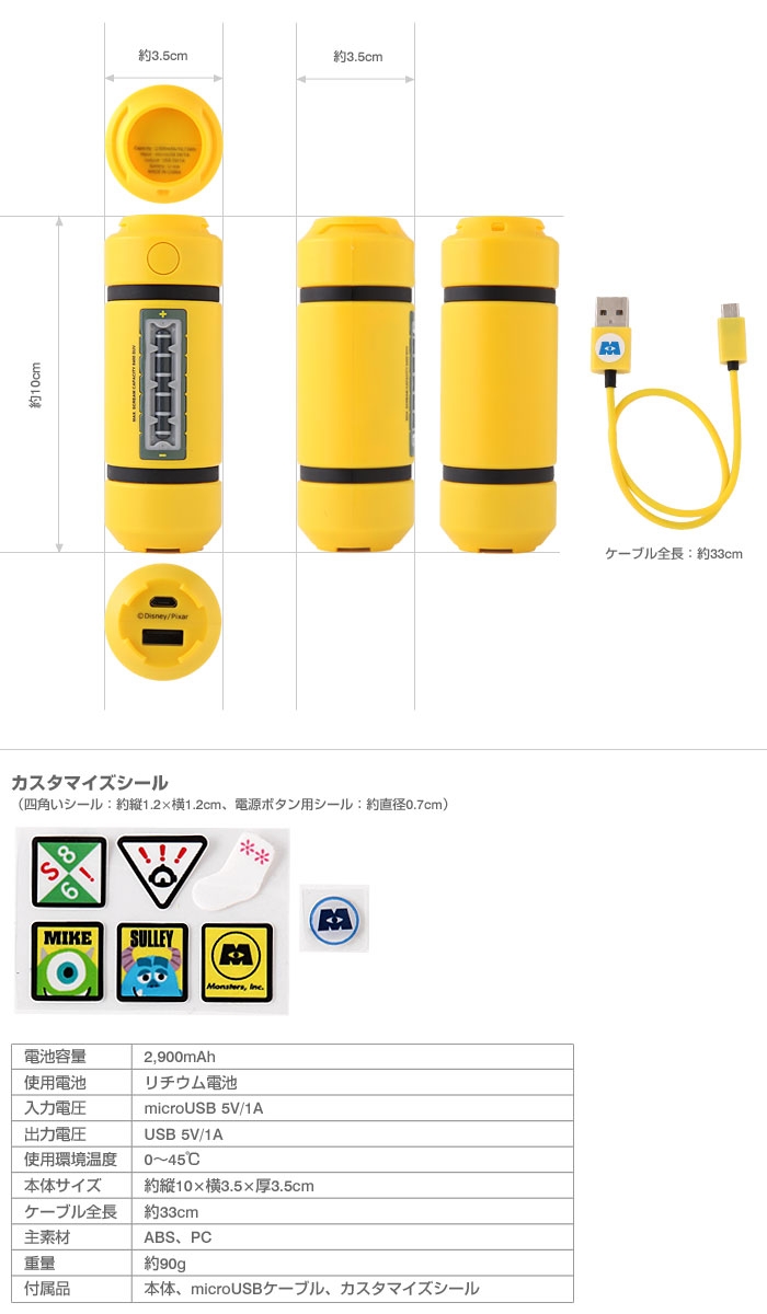 【モンスターズインクエネルギータンク型モバイル充電器2900mAh】