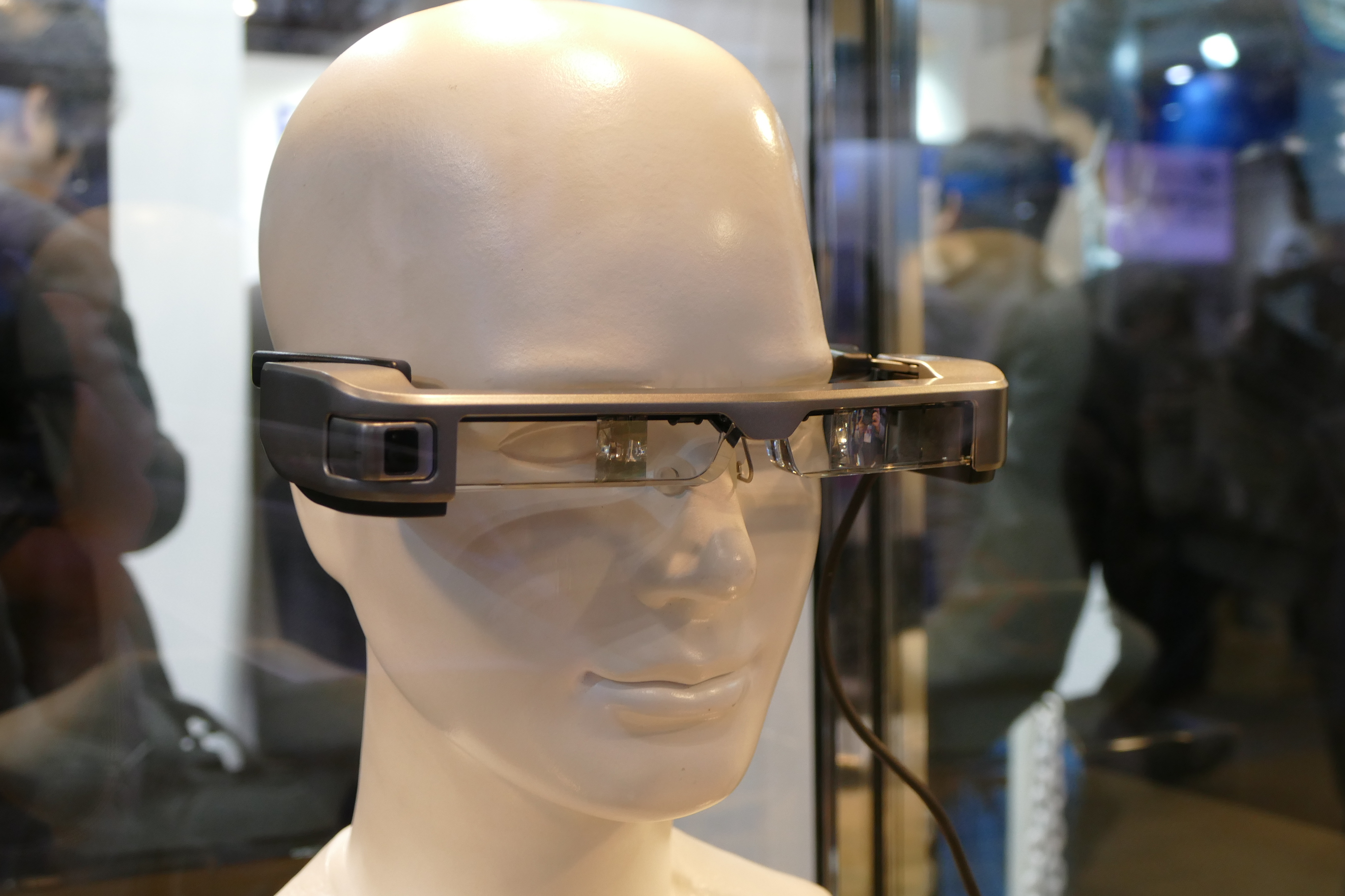 ▲エプソンが提供する商用スマートグラス「MOVERIO」。Androidをベースにしている。筆者は、同社が提供する「LiveTalk」というソフトウェアで、音声をテキスト化および翻訳して表示できるというデモを体験した