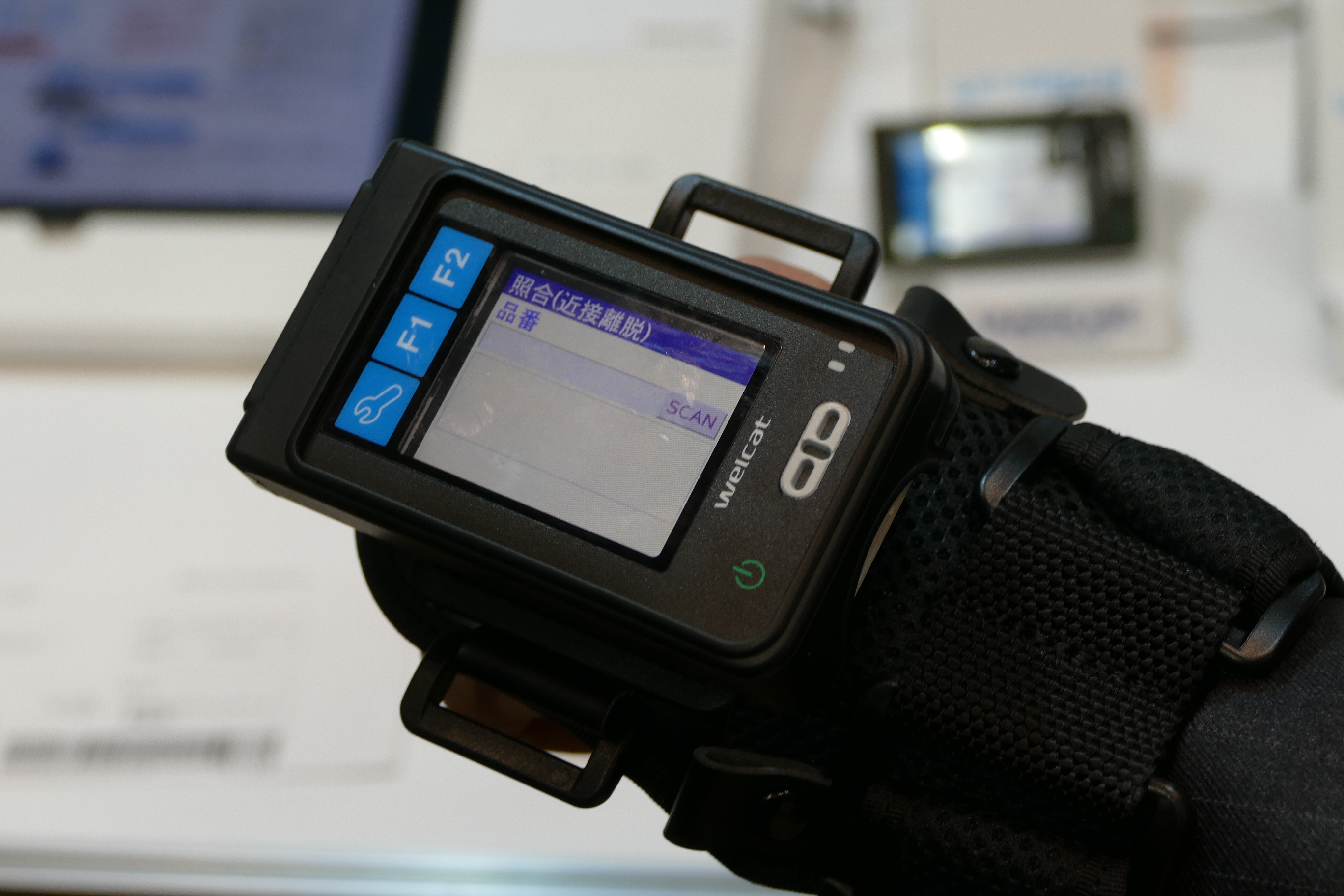 ▲手の甲などの装着して使うウェルキャットのウエアラブルターミナル「WIT」シリーズ。初代は2006年から出ている定番の商品だ