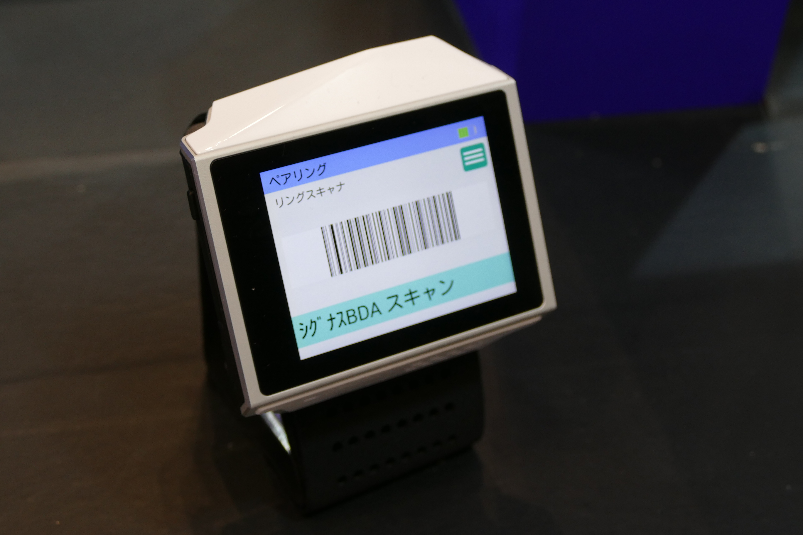 一方、BtoB向けでは、“腕に巻く”という選択肢も提案され続けている模様。例えば工場のラインなど、現場でタブレットを使うと両手が塞がれてしまいます。「じゃあデバイスを腕に巻けばよいではないか」という商品もチラホラ…。とはいえ、どれも目新しさに欠ける印象でした。