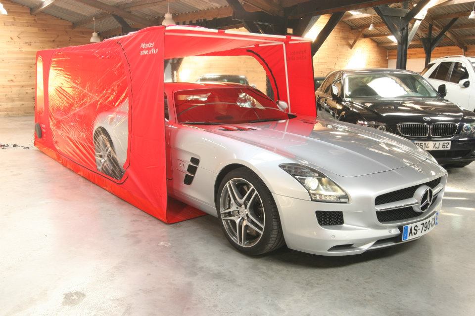 カウンタックなど憧れの名車は、当然ながら大切にしたい。だったら屋根付きガレージに入れ、さらにこれを使えば安心だ。ただのカバーではなく、空気を循環させることで愛車をしっかりとサビから守ることができる。