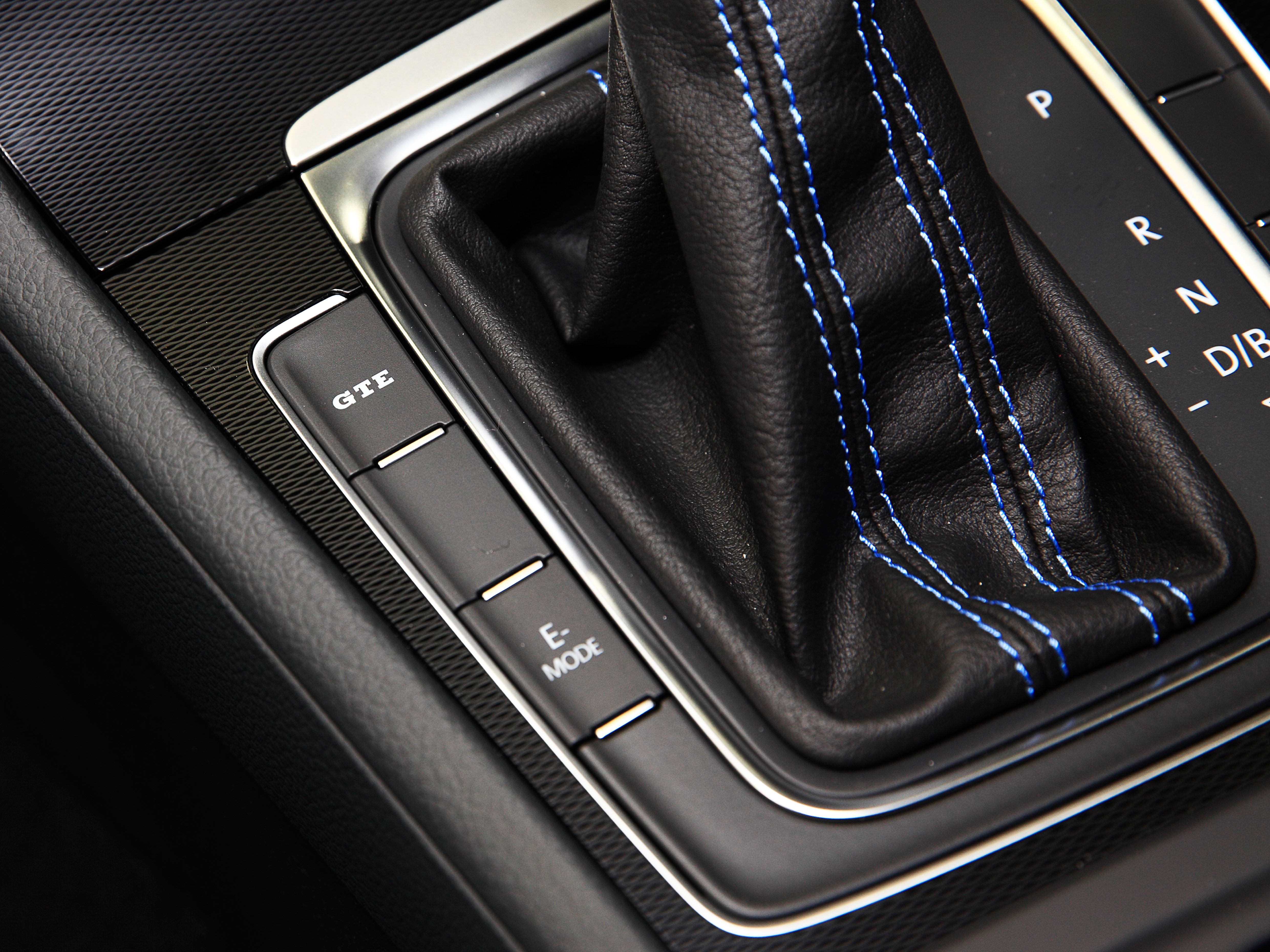 シフトレバー横の“GTEボタン”を押すと、ゴルフGTEの性格は一変。エンジン、ギヤボックス、アクセル&ステアリングレスポンス、そしてエンジンサウンドまでもが、スポーツモードへと切り替わります。