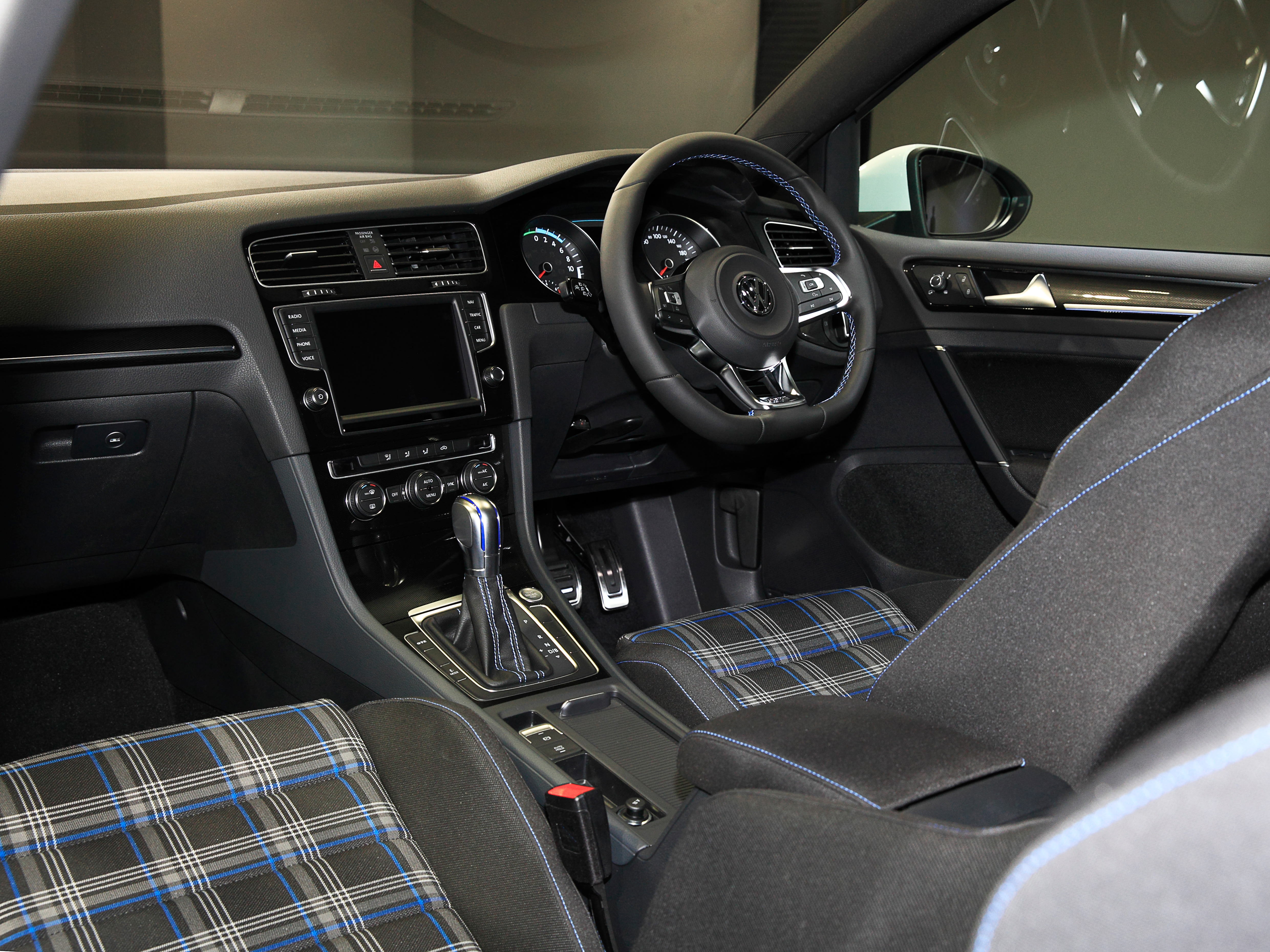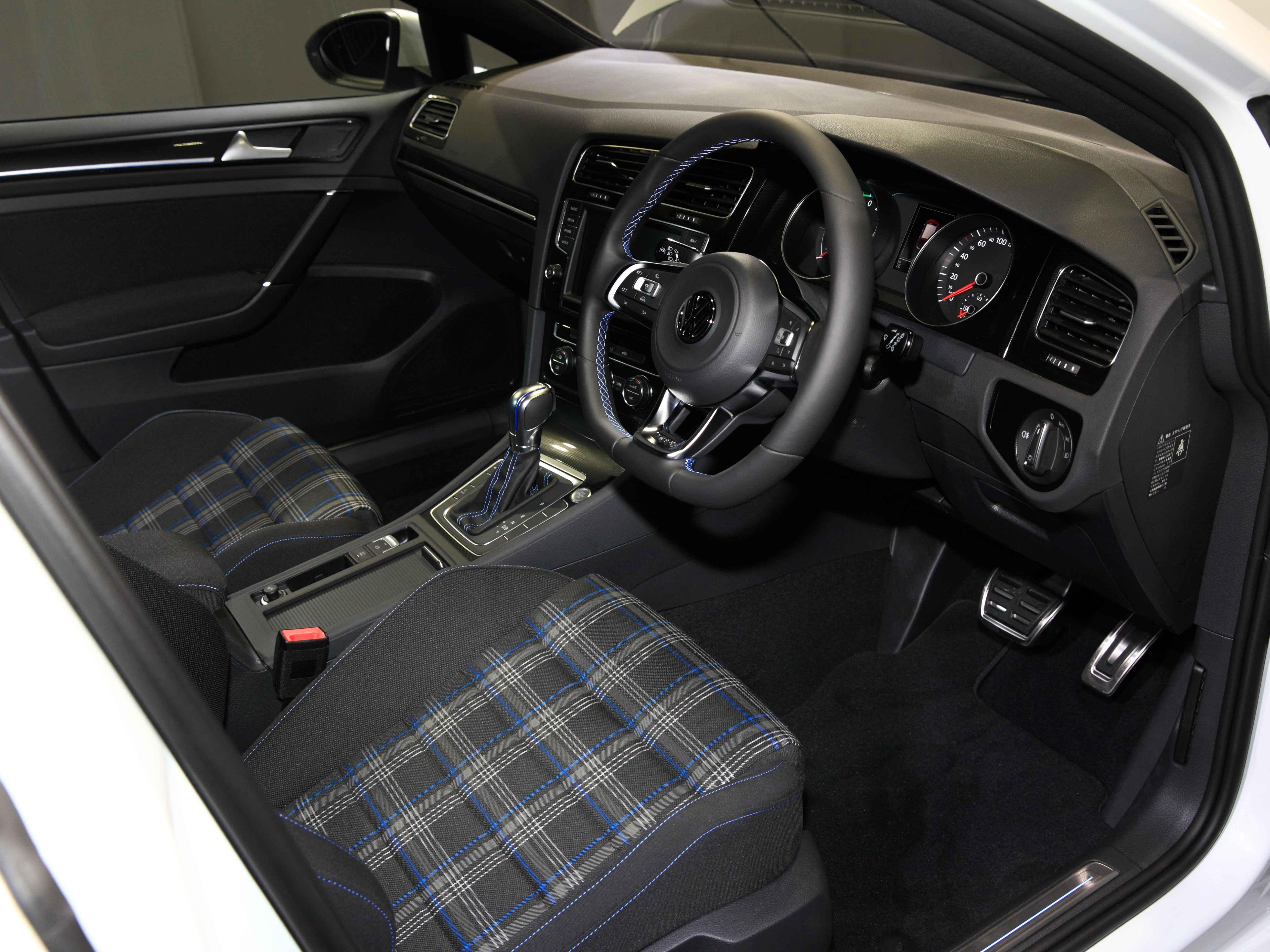 ゴルフGTEのスタイリング、それは、スポーティなハッチバックカー=ホットハッチの代名詞「ゴルフGTI」に準じたもの。ただし、GTIがアクセントカラーとして赤を随所に散りばめているのに対し、GTEのそれはブルー。ボディ内外に使われています。