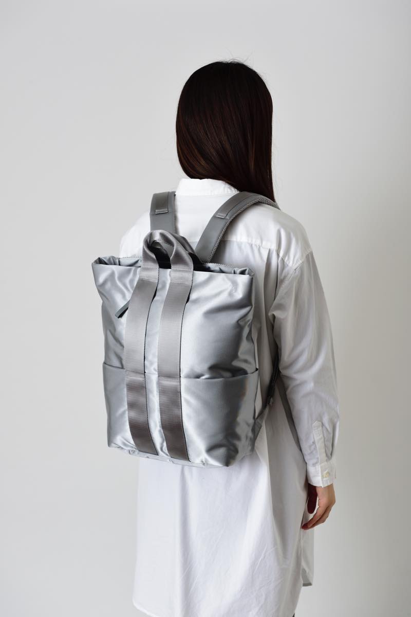「バックパック」と「バックパックM」は、ノートパソコンやタブレットなどが収納できるクッションポケットや、小物が収納できるファスナーつきのフロントポケットを搭載。また、ショルダーベルトのほかに持ち手がついており、トート持ちもできる2WAY仕様なので、移動時にはバックパック、仕事先では手持ちといったように使い分けできそうです。