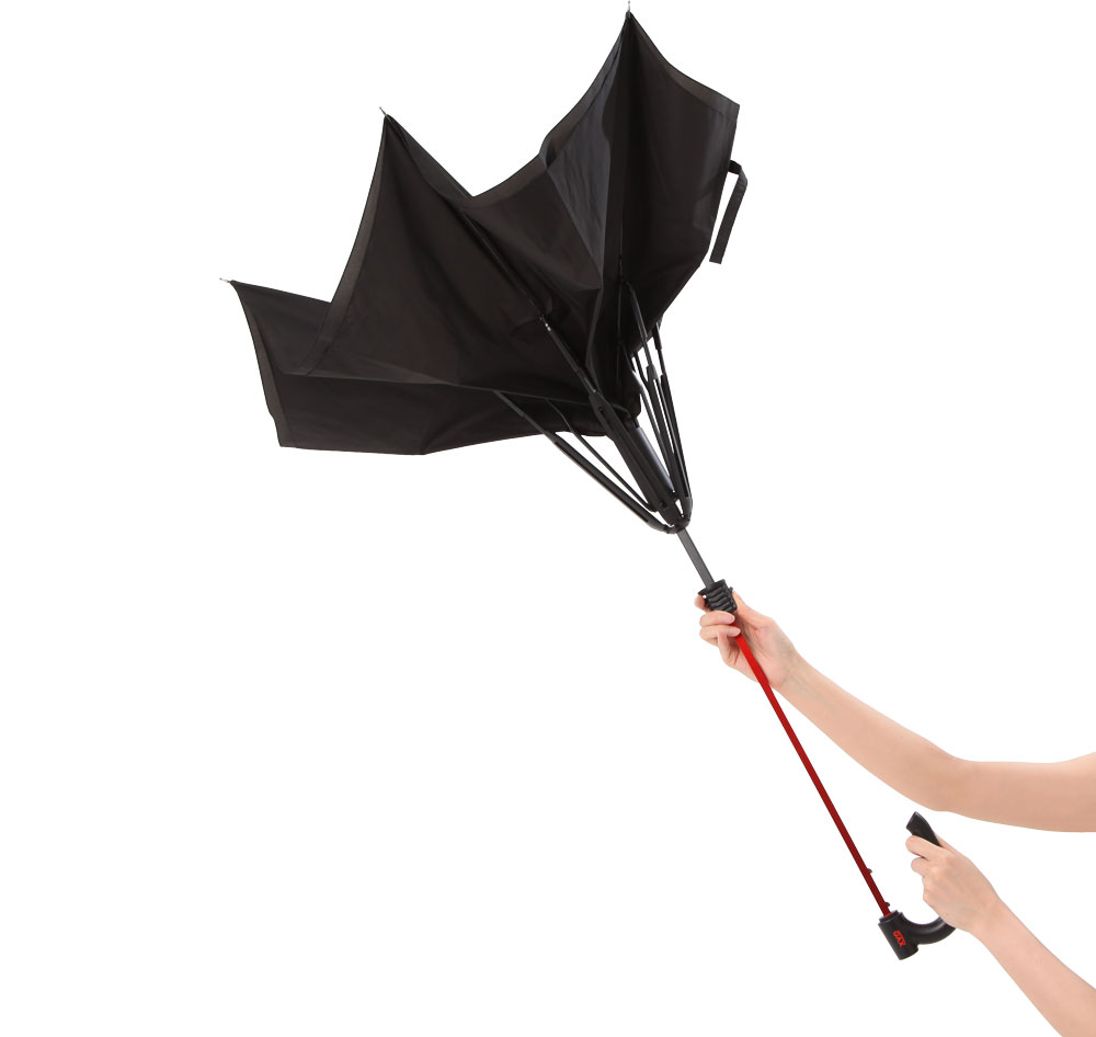 逆に開ける傘は、すでに他メーカーから登場して人気を集めている。画期的な仕組みが人気を集めていた。それはそれで優れたプロダクトだったが、傘の骨が露出しているため、風に飛ばされて「裏返し状態」のように見える。骨じたいも濡れてしまうため、それが気になる人もいるだろう。