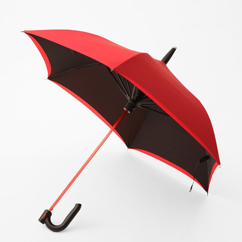 布も二重構造になっているため、傘のシャフトが濡れることがなく、細かな部分までこだわってつくられている。閉じた姿も通常の傘と変わらないため、持ち運びも問題なし。価格はちょっと高めの3万6720円だが、このこだわり具合を見れば納得。広げたサイズは直径105cm、カラーはレッド×ブラック、ブラック×ブラックの2色。