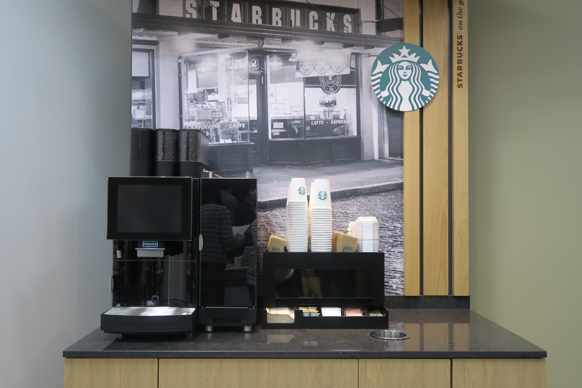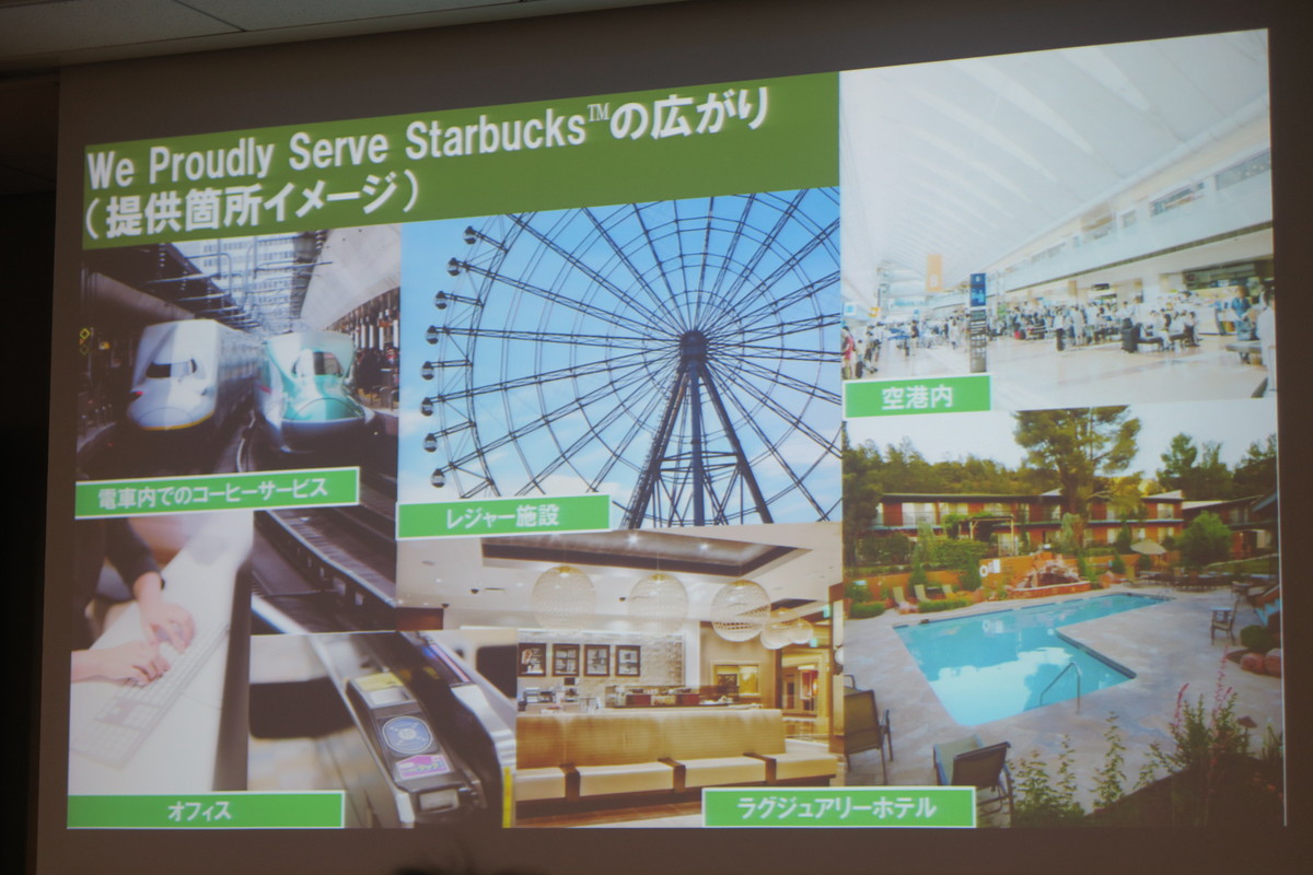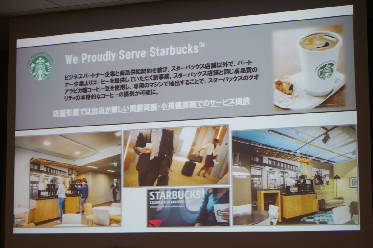今回発表された「We Proudly Serve Starbucks」は、スターバックス店舗以外でもスターバックスのコーヒーを楽しむことができる新しい取り組み。専用マシンと店舗と同じコーヒー豆などを使い、店舗と同じクオリティのコーヒーを提供できるようになる仕組みです。