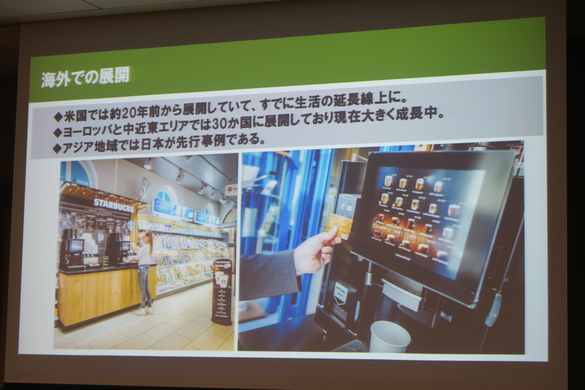 アメリカでは約20年前から展開されているこのサービス、アジアでは日本が先行導入となります。現在、日本国内で展開されているのは、企業内のいわゆる“有人カフェ内”が中心。しかしヨーロッパではすでにクレジット決済をつかった“セルフサービス”方式も導入されており、日本での導入も視野に入れているとのこと。
