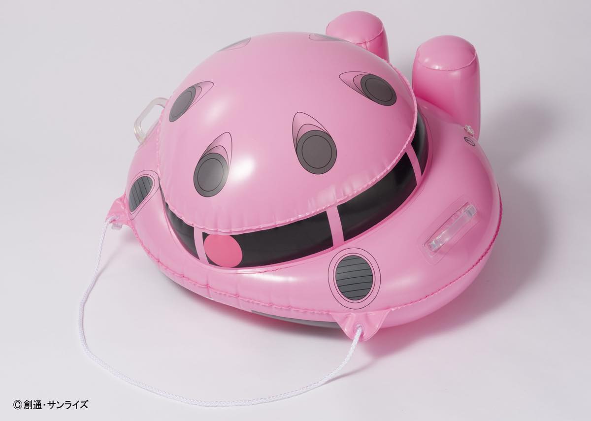 愛らしいフォルムで人気の「MSM-04 アッガイ」をモチーフとした「アッガイ フロート」(5184円)は、膨らませると1mのビッグサイズに! 特徴的な大きな頭部をリアルに再現してあり、頭頂部にはしっかり捕まれるように取っ手が2基ついており、アッガイの頭に乗って優雅に泳ぐことも。
