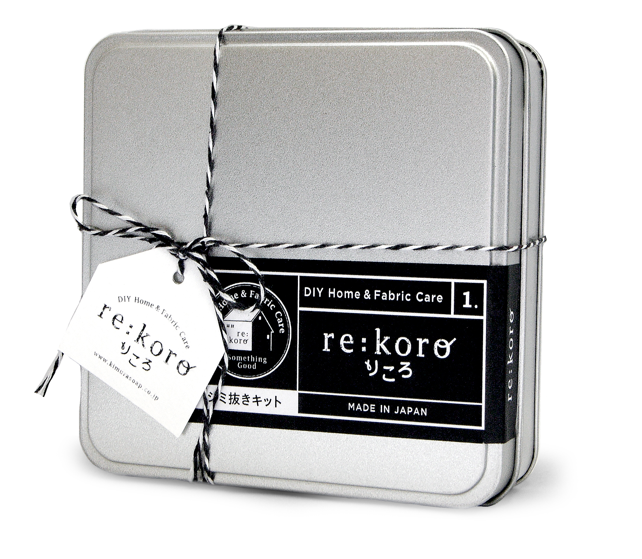 こんなときに重宝するのが、このシミ抜きキット。大阪・八尾で大正13年から石鹸メーカーを営む木村石鹸工業が立ち上げたファブリック&ホームケアの新ブランド「re:koro(りころ)」の第一弾となるプロダクト。価格は3780円。