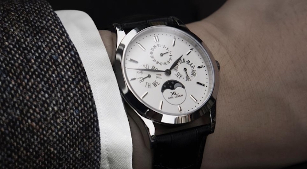 そこに登場したのが、気鋭の新ブランド・KARL-LEIMON(カル・レイモン)のファーストモデル「Classic Pioneer」。文字盤にムーンフェイズを置くヨーロピアンクラシックなデザイン、一方でどこかモダンで清々しい表情。この雰囲気、ちょっと今までなかったかもしれません。