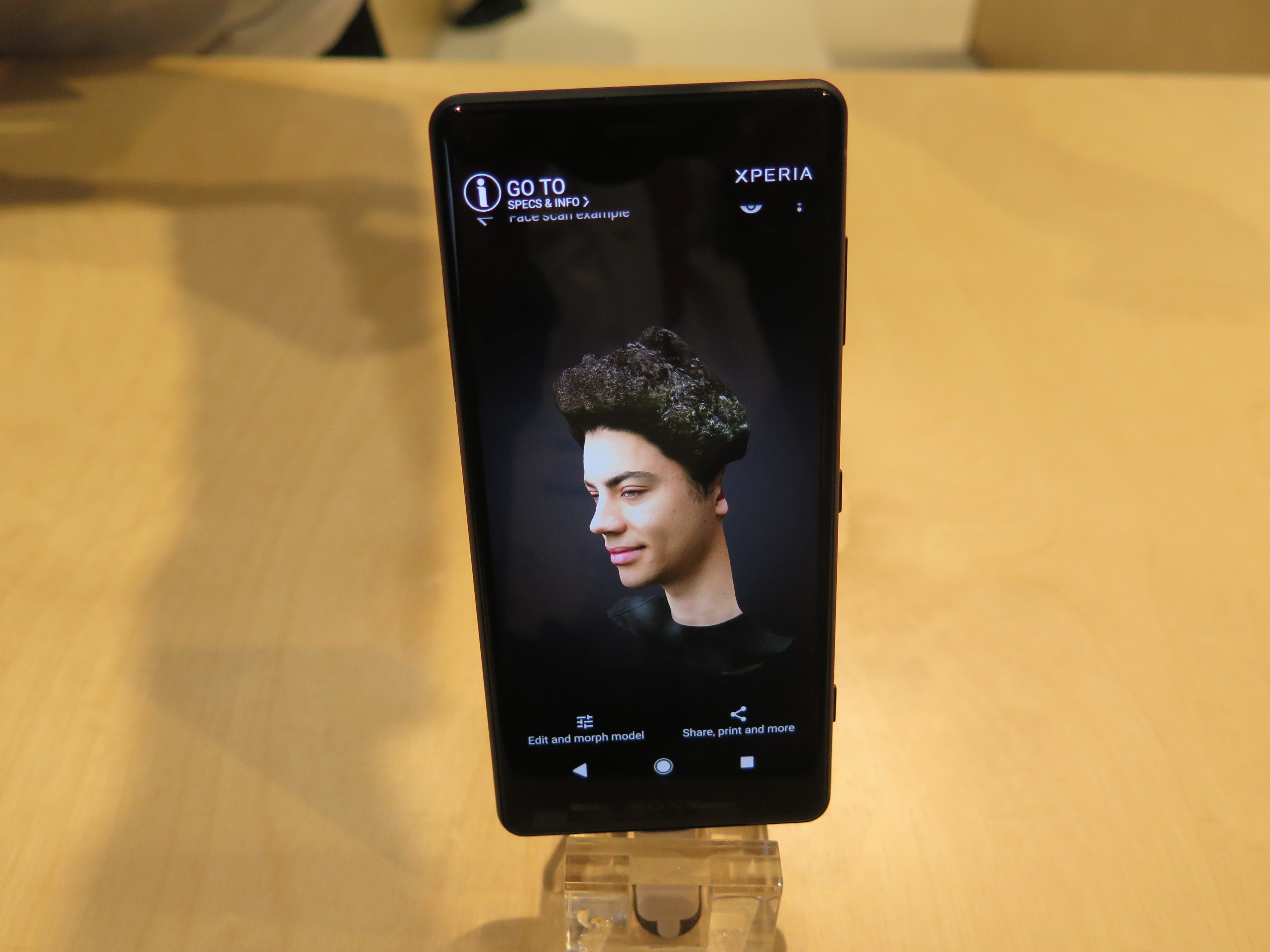 前モデルXperia XZ1/XZ1 Compactで好評だった「3Dクリエーター」も進化。XZ1/XZ1 Compactでは、背面カメラでしか3Dスキャンができなかったのですが、XZ2ではフロントカメラで自分でできるようになりました。