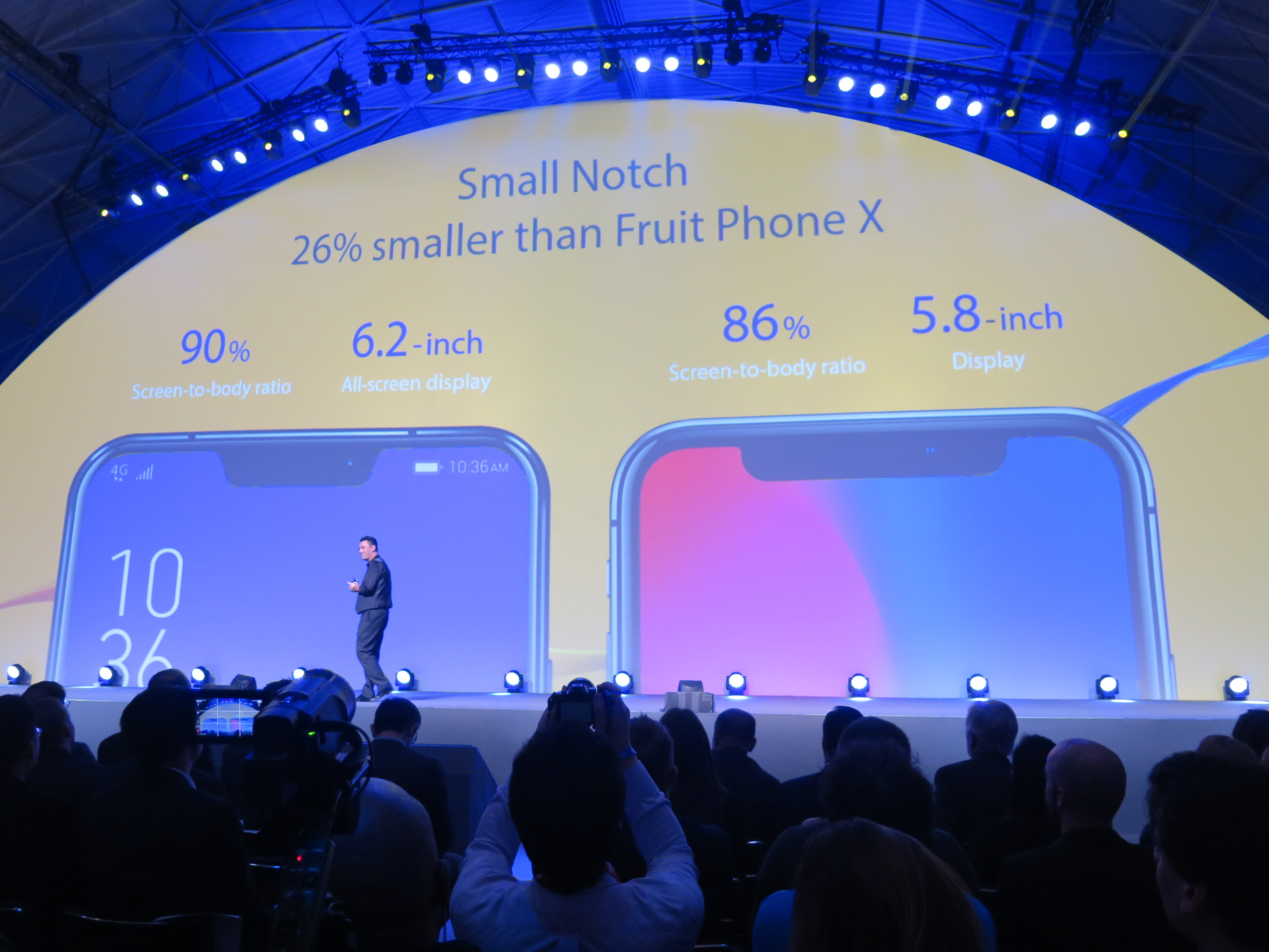 ▲“Fruit Phone X” よりもノッチが小さいことをアピール