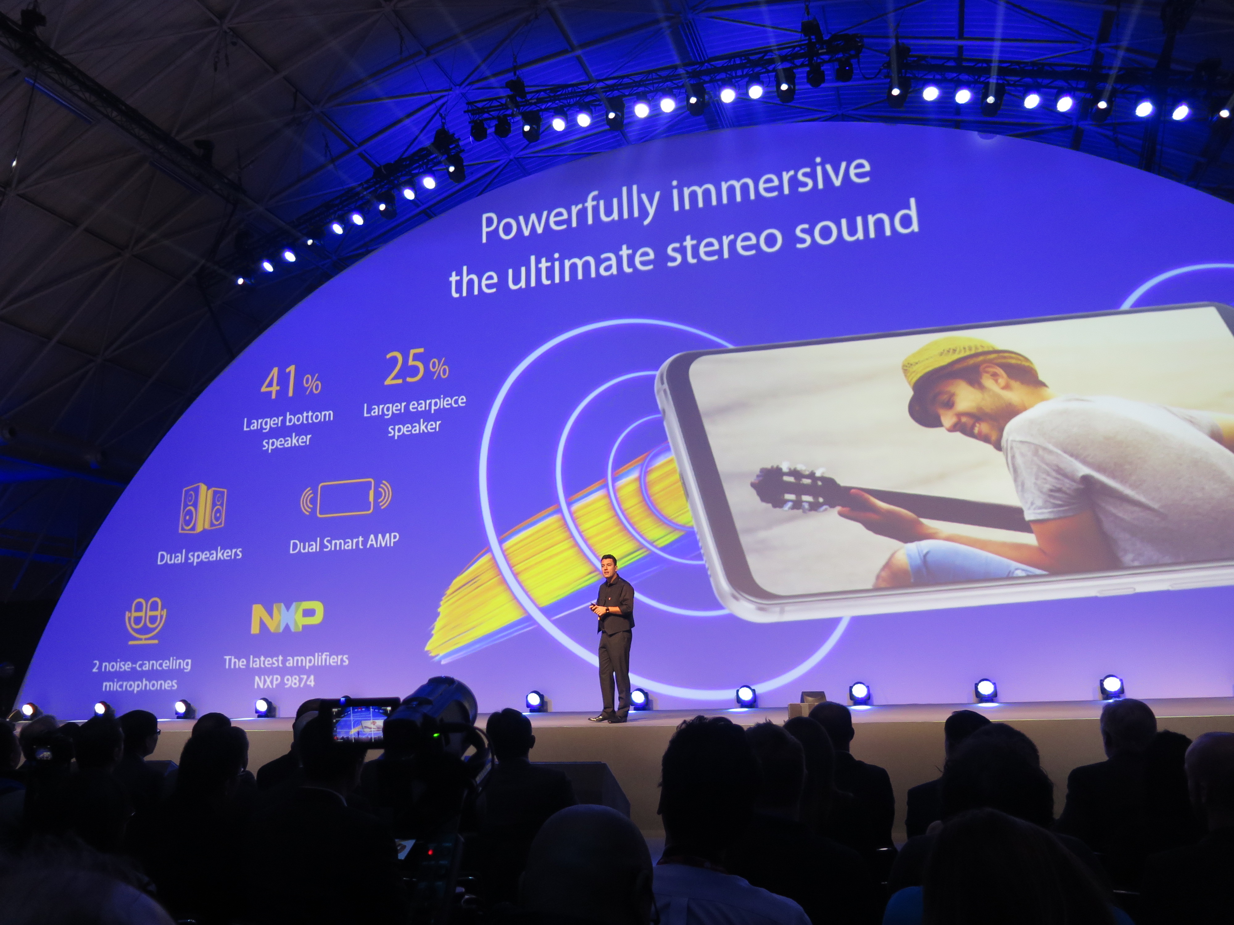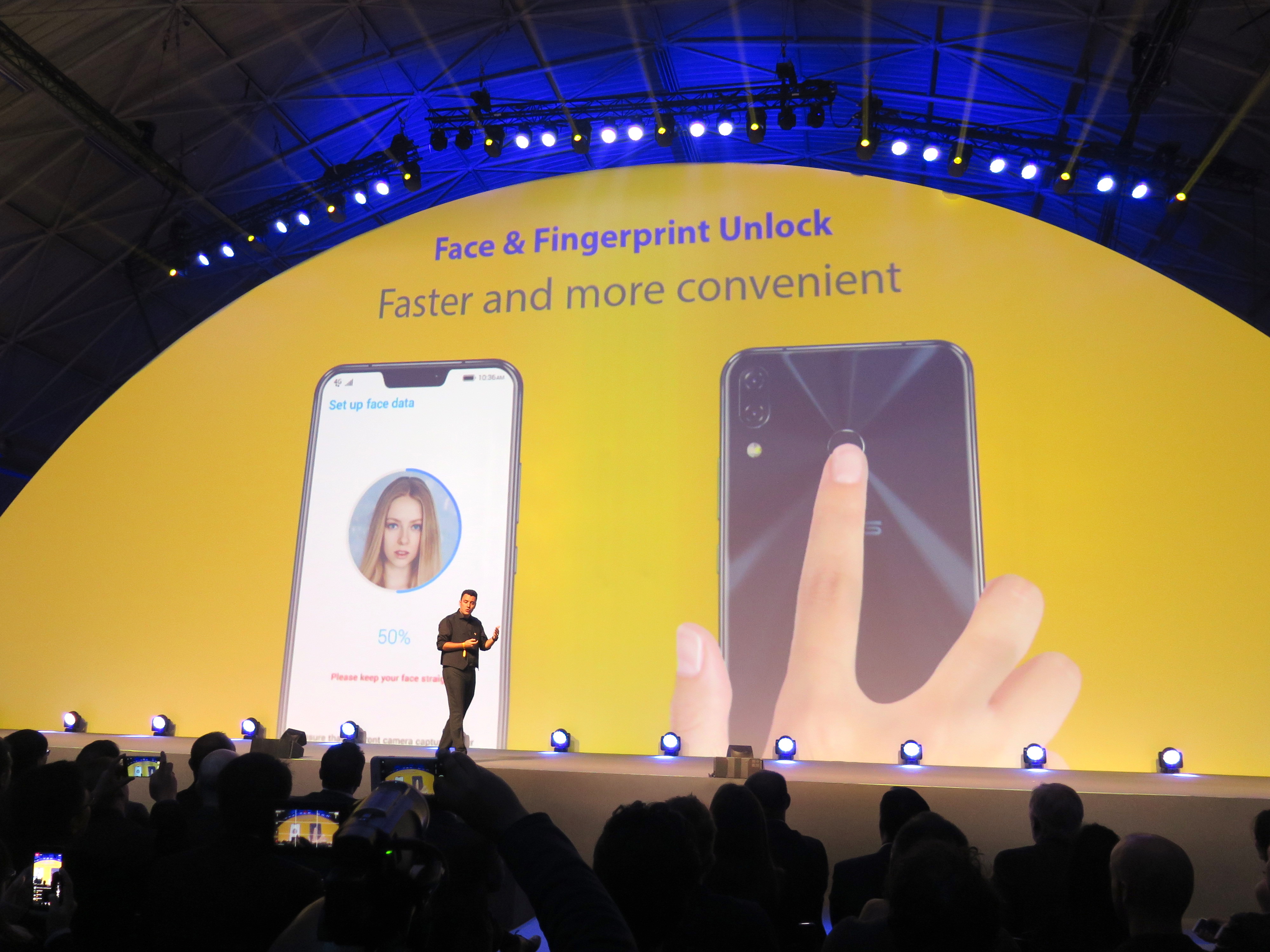 ▲画面占有率が90%の6.2インチディスプレイを搭載するZenFone 5/5Z。前面カメラは800万画素