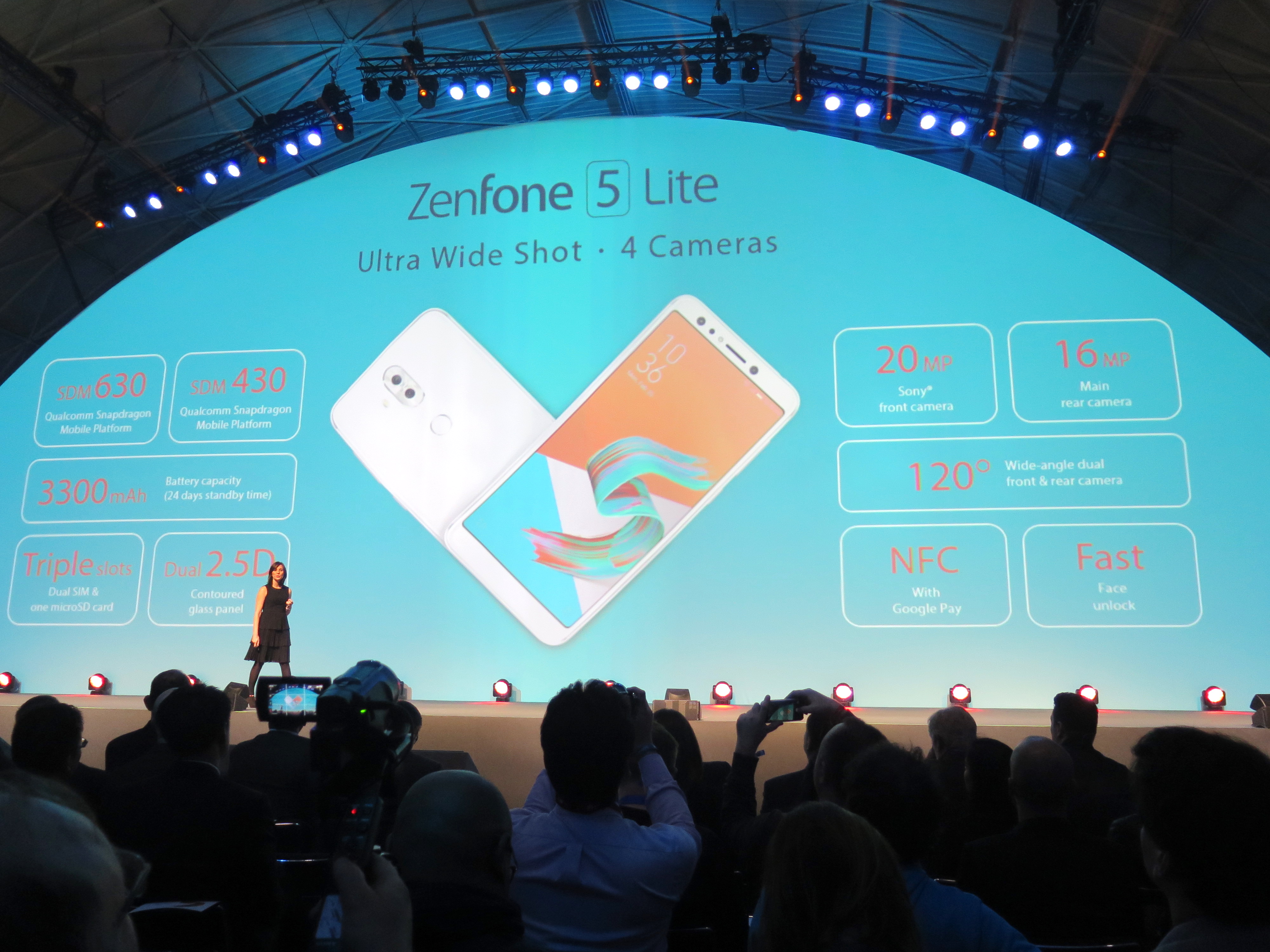 ▲6インチで画面アスペクト比が18:9のディスプレイを搭載するZenFone 5 Lite。上部に2つのレンズを搭載