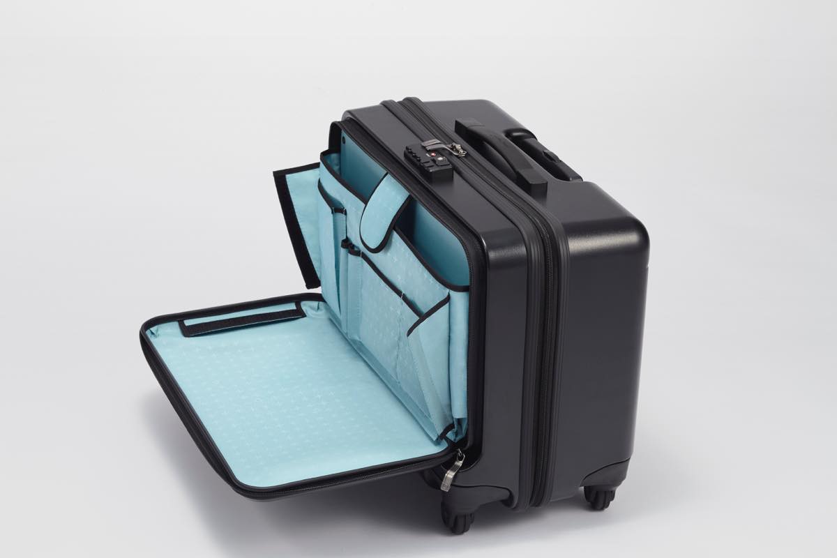 出張時に荷物はコンパクトにまとめたいもの。でもキャリーバッグに何もかも入れてしまうと、ちょっと書類やノートを出したい時に衣類が丸見えの状態でバッグを開く羽目に…。そこで登場したのが書類専用の収納を備えたキャリーケース。大事な書類を衣類とは別にしまえますよ。