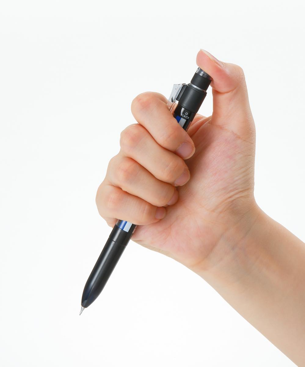 こだわりは“消し味”だけじゃありません。ボールペンは0.5ミリの油性ボールペン 黒インク・赤インクの2色。独自開発の、筆記抵抗が軽く滑らかに筆記できる“エアータッチインク”を採用。筆記濃度が濃く、くっきりとしていて、書きだしのカスレも大幅に低減されています。これならスイスイ書けそう。
