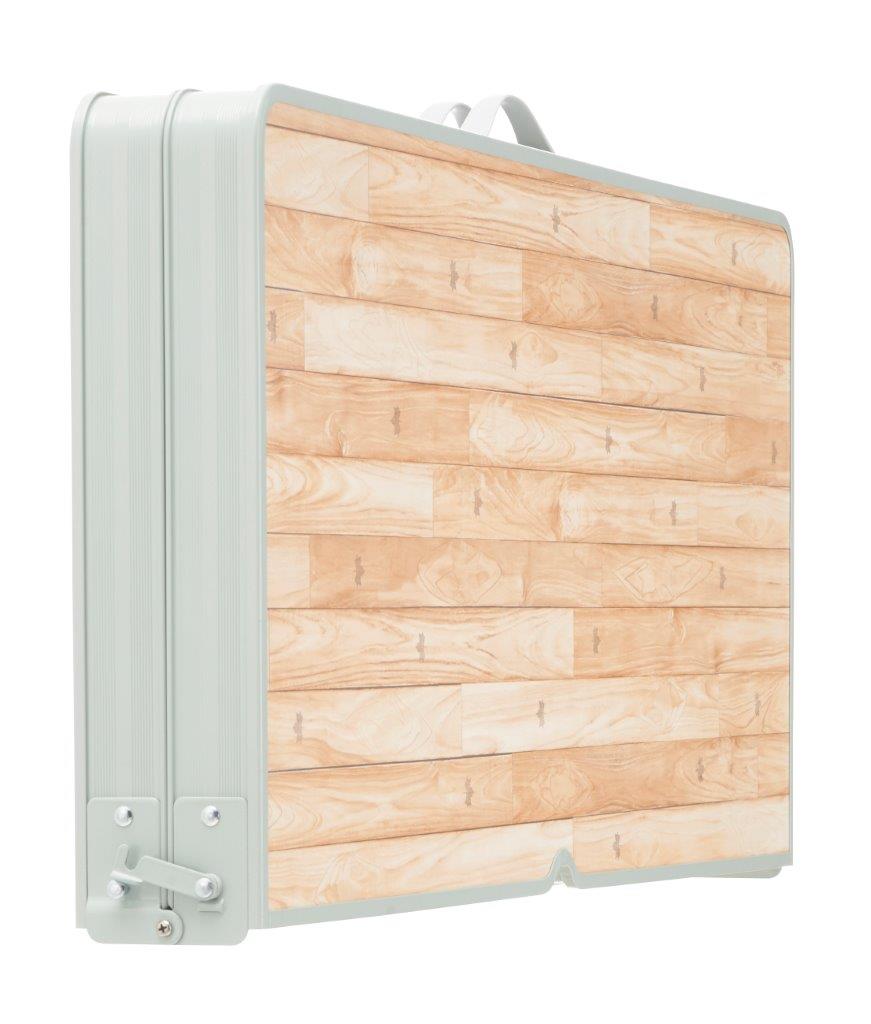 シンプルなウッド調の天板は、テントやチェアなど他製品との相性も抜群。アルミフレームを採用しているので、女性でも軽々と持ち運びできるのはウレシイですね。と、ここまで便利だとキャンプだけで使うのはもったいなくないですか? そうです、日常生活でも使っちゃいましょう。