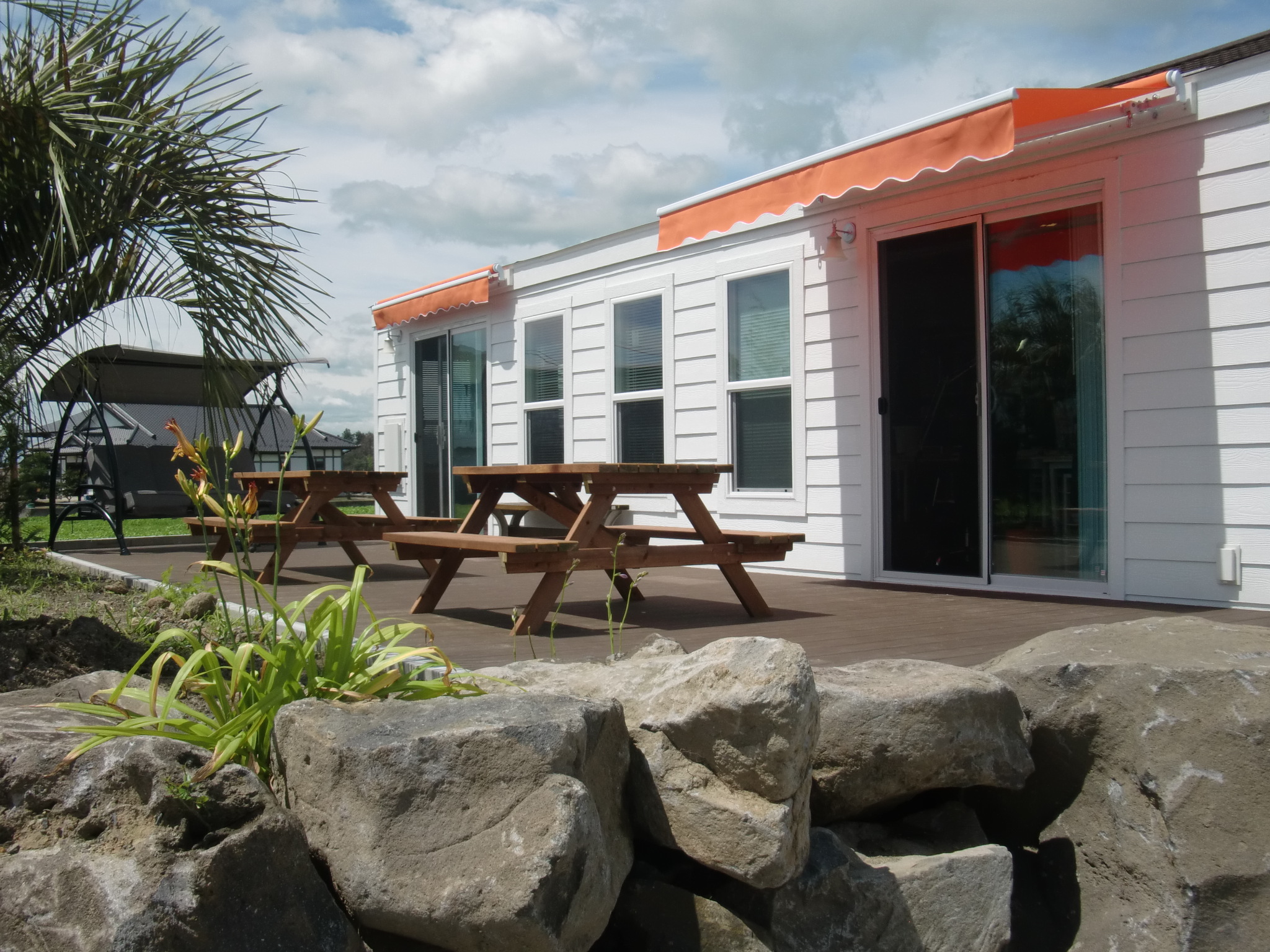 頻繁な移動を前提としたキャンピングカーと違い、通常は一度設置したらその土地で居住することが前提となるが、市街化調整区域など本来建築物の造成ができない場所でも設置できたり、基礎工事要らずで転居や売買が容易といった自由さが魅力。