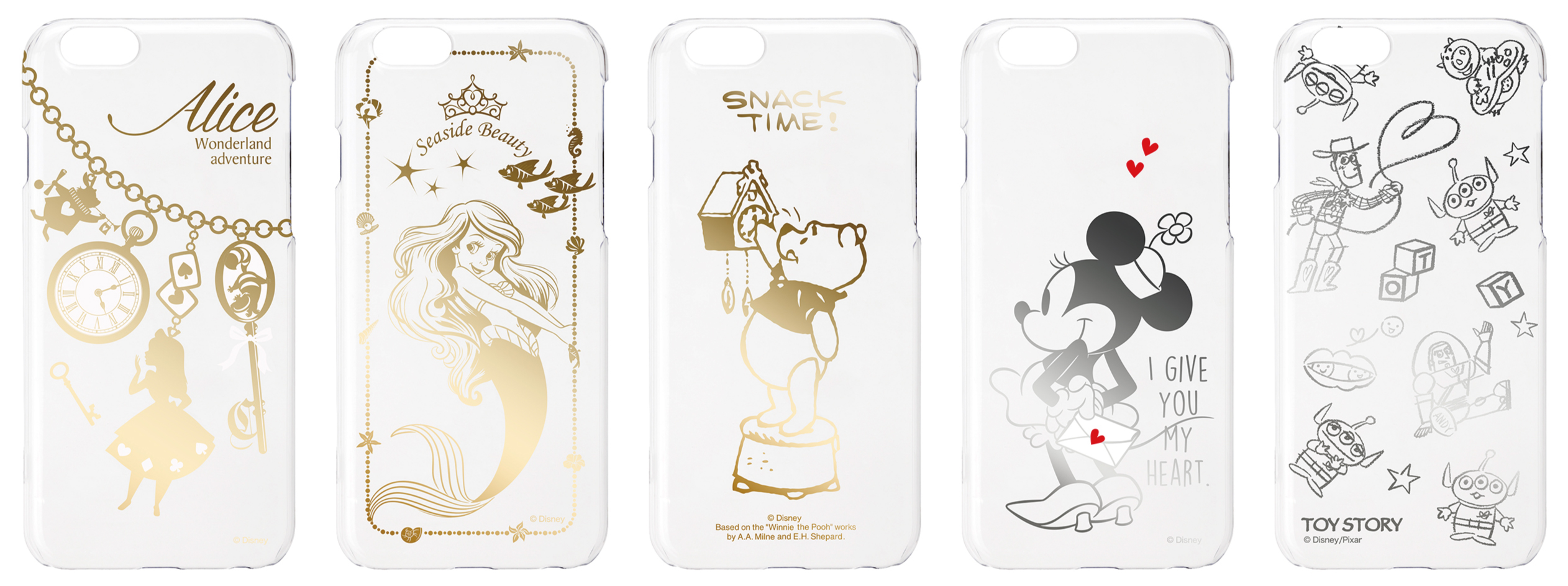 ポリカーボネイトケース(クリアタイプ 5種類)は、クリアケースにカラーのキャラクターをオン。透明なのでiPhone本体の色も楽しめる。