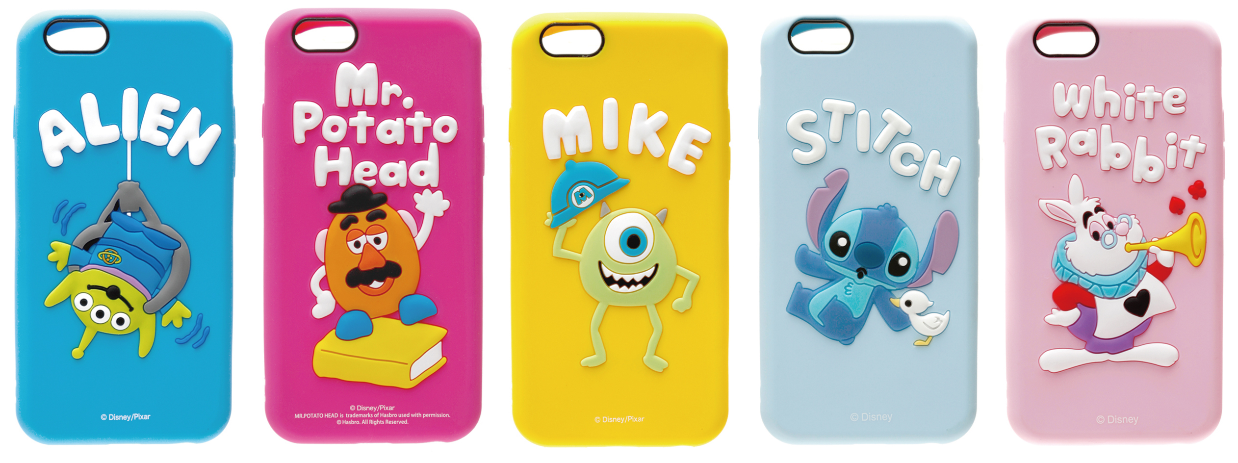まずは、シリコンソフトケース(5種類)。エイリアンやスティッチがぷっくりと盛り上がり、キッチュな印象!