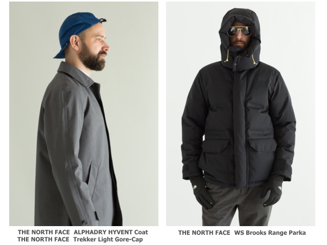 ■(左)ザ・ノース・フェイス ALPHADRY HYVENT Coat(アルファドライハイベントコート)/3万9960円/カラー:チャコール、ウォルナット、ブラック、ウッドランド/素材:ALPHADRY HYVENT(3.5層) ■(右)ザ・ノース・フェイス WS Brooks Range Parka(ウィンドストッパーブルックスレンジパーカ)/7万9920円/カラー:ブラック、 エンパイアブルー/ 素材: Bay Head Cloth WINDSTOPPER(2層)