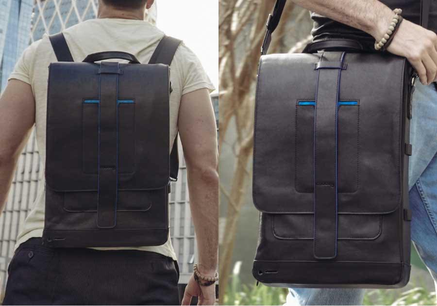 日本初上陸となる「Moovy Bag」(ムービー・バッグ) は普通の本革バッグに見えますが、実はスグレモノ。なんとスマホ、 タブレット、 ノートPCを一度に充電できる機能を搭載しているんです。しかも超大容量22000mAhですからiPhone 7は、約9回、iPad air 2は、約2.5回、MacBook Pro(13インチ)は約3.5回も充電できるというからオドロキです。