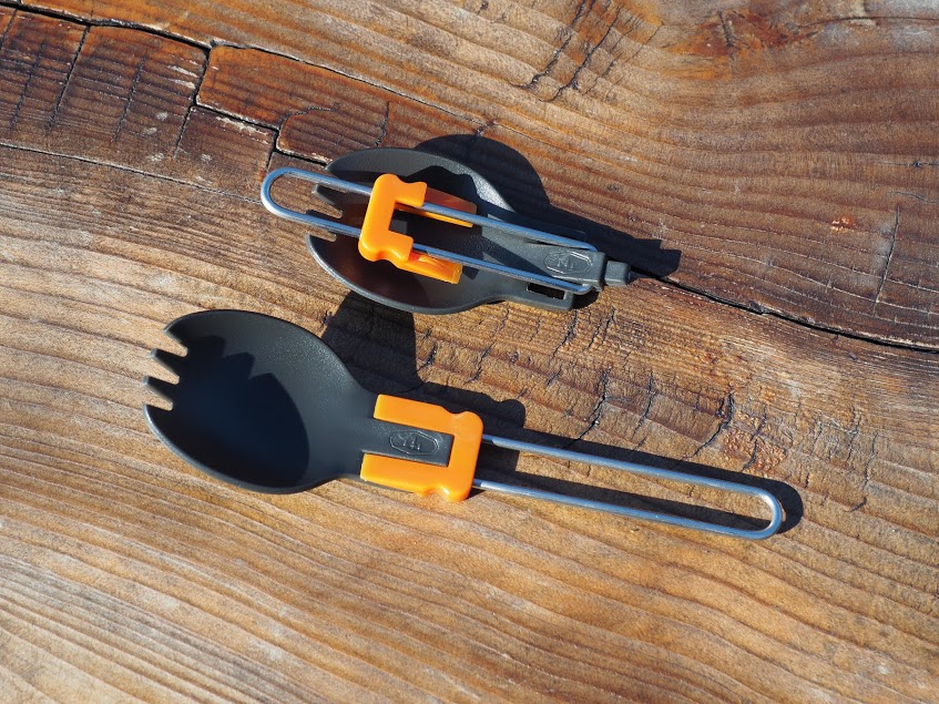 スプーン、フォークの両方として使えるスポークです。持ち手部分が折り畳めるので収納に困りません。