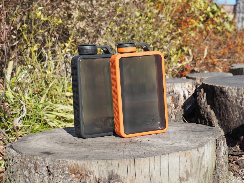 収納しやすさを追求したスクエアスタイルのフラスコです。軽量で中身が見やすいのがウレシイですね!