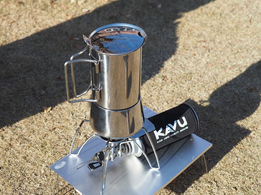 軽量で丈夫なアルミニウム製のカップです。ハンドルは折り畳めるのでコンパクトに収納可能。小型のクッカーとしても使用できます。