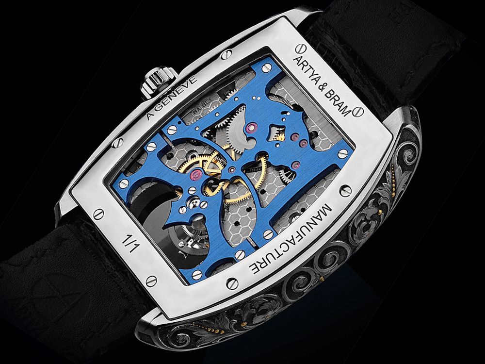 スイス・ジュネーブの時計ブランド・アーティアがリリースした「アラベスク2 クロノ トゥールビヨン モノプッシャー」。著名な彫金師ブラム・ラモンとコラボレーションし、64チタン合金に手彫りを施した特別モデルです。64チタン合金は純チタンの3倍という非常に高い硬度を有し、手彫りをするのは非常に困難なのですが、それに挑んだ「アラベスク2 クロノ トゥールビヨン モノプッシャー」は実に美しい仕上がり。歴史的な銃器に刻まれたフローラルパターンからインスピレーションを得た紋様が本体を彩っています。