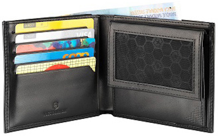 カードポケットにさりげなくデザインされた45度の切り込みが、クレジットカードや身分証明書などの取り出しを驚くほどスムーズにしてくれます。しかも、クレジットカードなど個人情報を含んだIDデータを無作為、または故意に盗み出そうとするスキミング行為を防ぐ「RFIDプロテクション」を搭載。