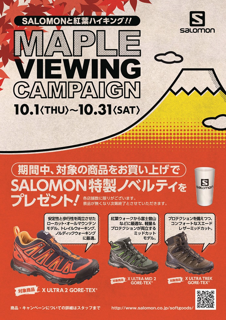 また10月1日から10月31日まで、全国のサロモン正規取り扱い店舗で「X ULTRA 」シリーズの対象商品(X ULTRA MID 2 GORE-TEX® (メンズ、ウイメンズ)、X ULTRA 2 GORE-TEX®(メンズ、ウイメンズ)、X ULTRA TREK GORE-TEX®(メンズ、ウイメンズ))を購入すると、店頭でサロモンオリジナル エコタンブラーがもらえるキャンペーンも実施中。数に限りがあるため先着順となる。