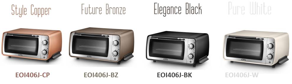 カラーはそれぞれスタイルコッパー、フューチャーブロンズ、エレガンスブラック、ピュアホワイトの4色展開。価格は電気ケトルが1万2960円、オーブン&トースターが1万9440円。